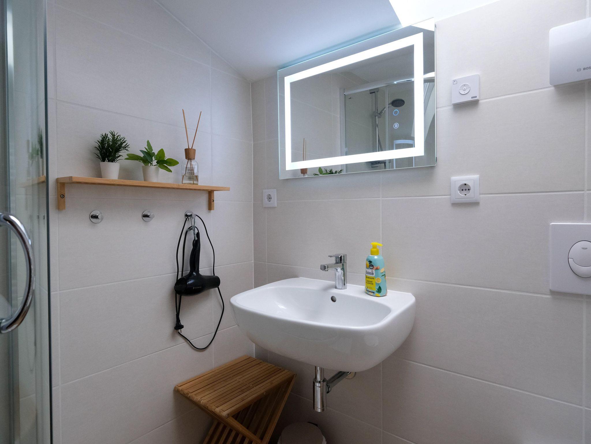 Zwei moderne Duschen und zwei separate WCs sorgen für zusätzlichen Komfort, besonders bei Belegung mit mehreren Personen.