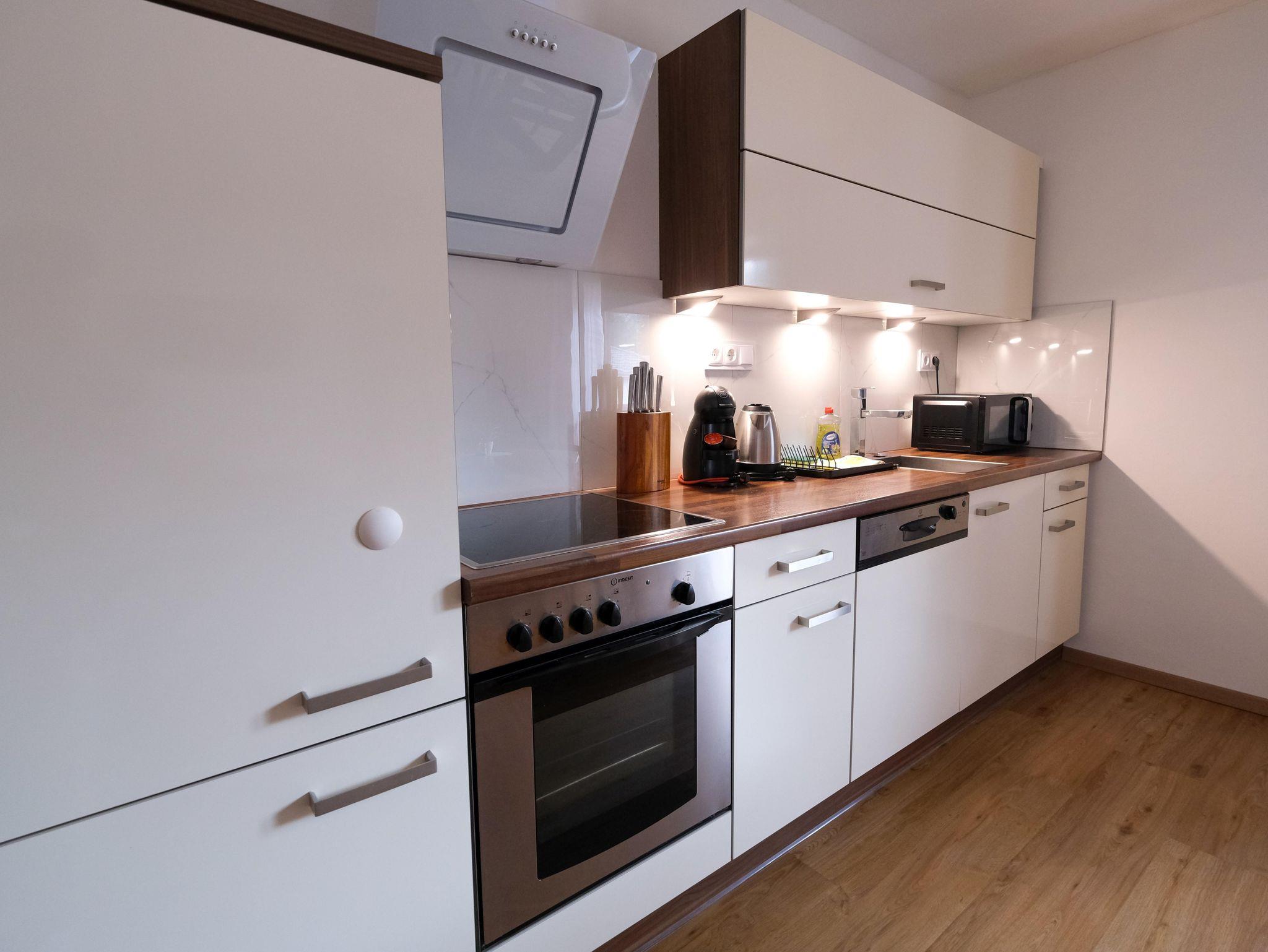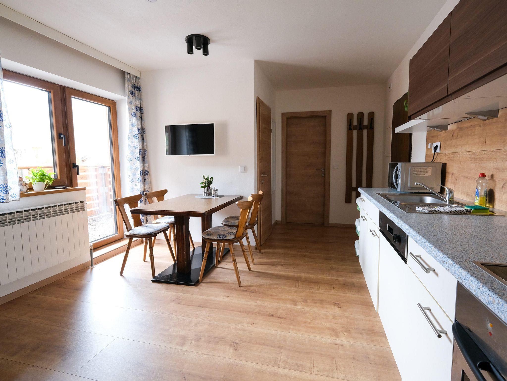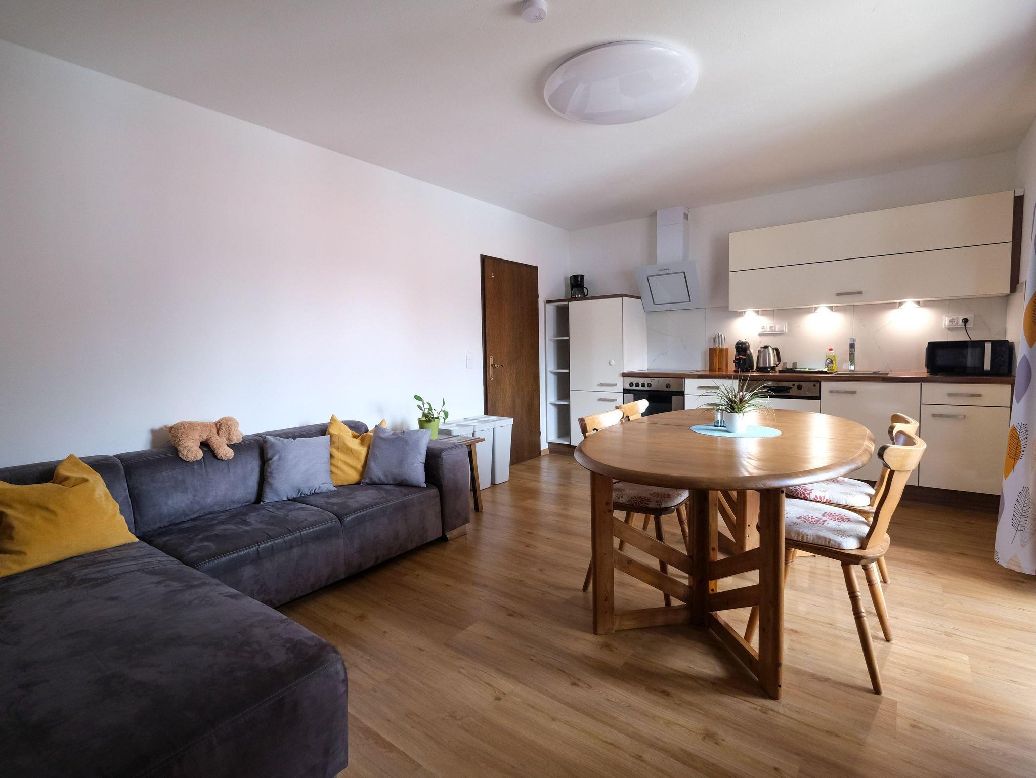 Dieses großzügige Apartment bietet idealen Raum für bis zu 4 Personen. Es verfügt über zwei separate Schlafzimmer sowie einen gemütlichen Wohnbereich mit voll ausgestatteter Küche. Hier finden Sie auch ein ausziehbares Sofa und einen Esstisch für gemeinsame Mahlzeiten oder entspannte Abende.