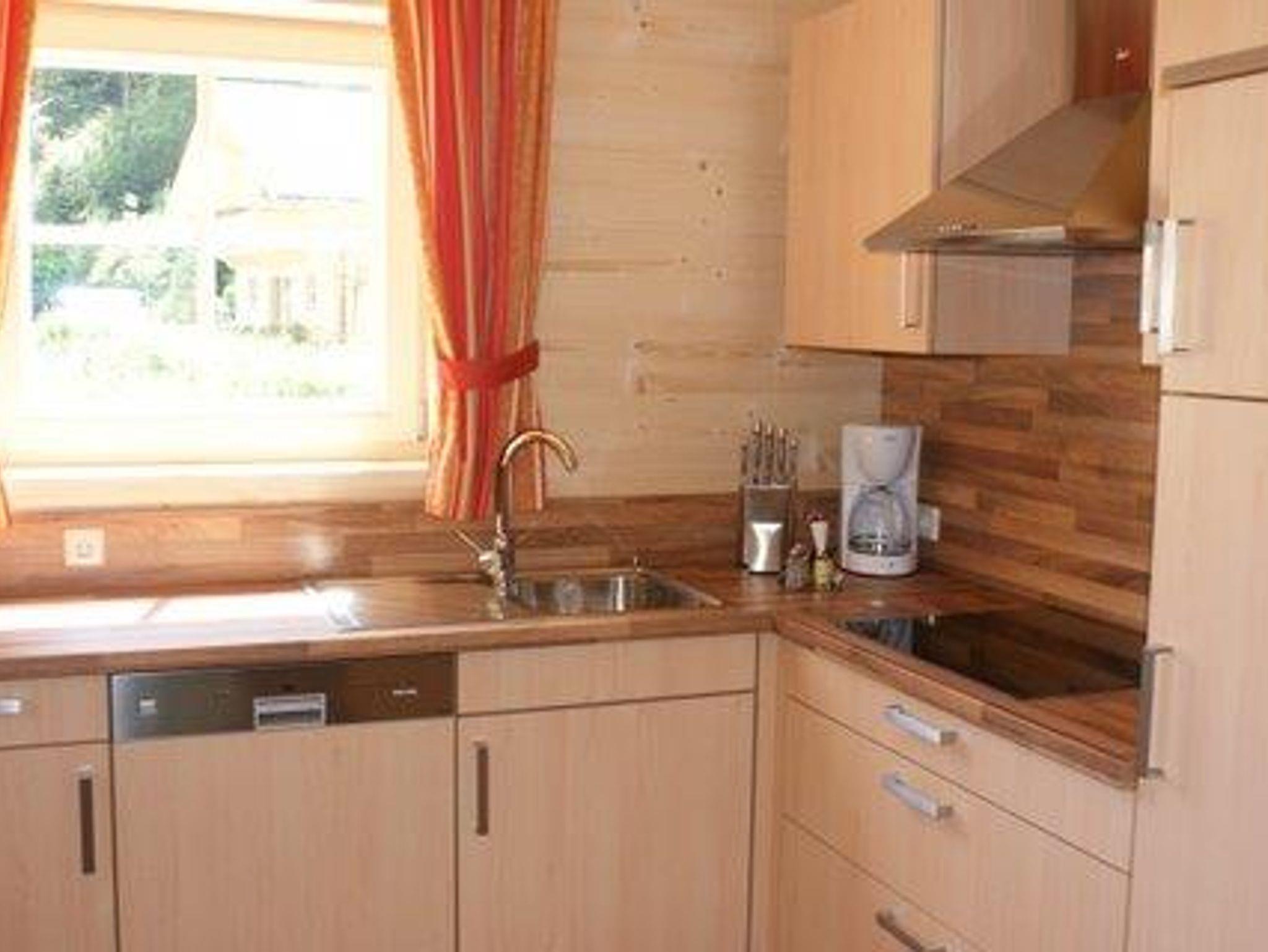 Wir bieten Ihnen eine komplett ausgestattete Küche mit E-Herd, Mikrowelle, Backofen, Kaffemaschine, Wasserkocher, Kühlschrank mit Gefrierfach und Geschirrspülmaschine.