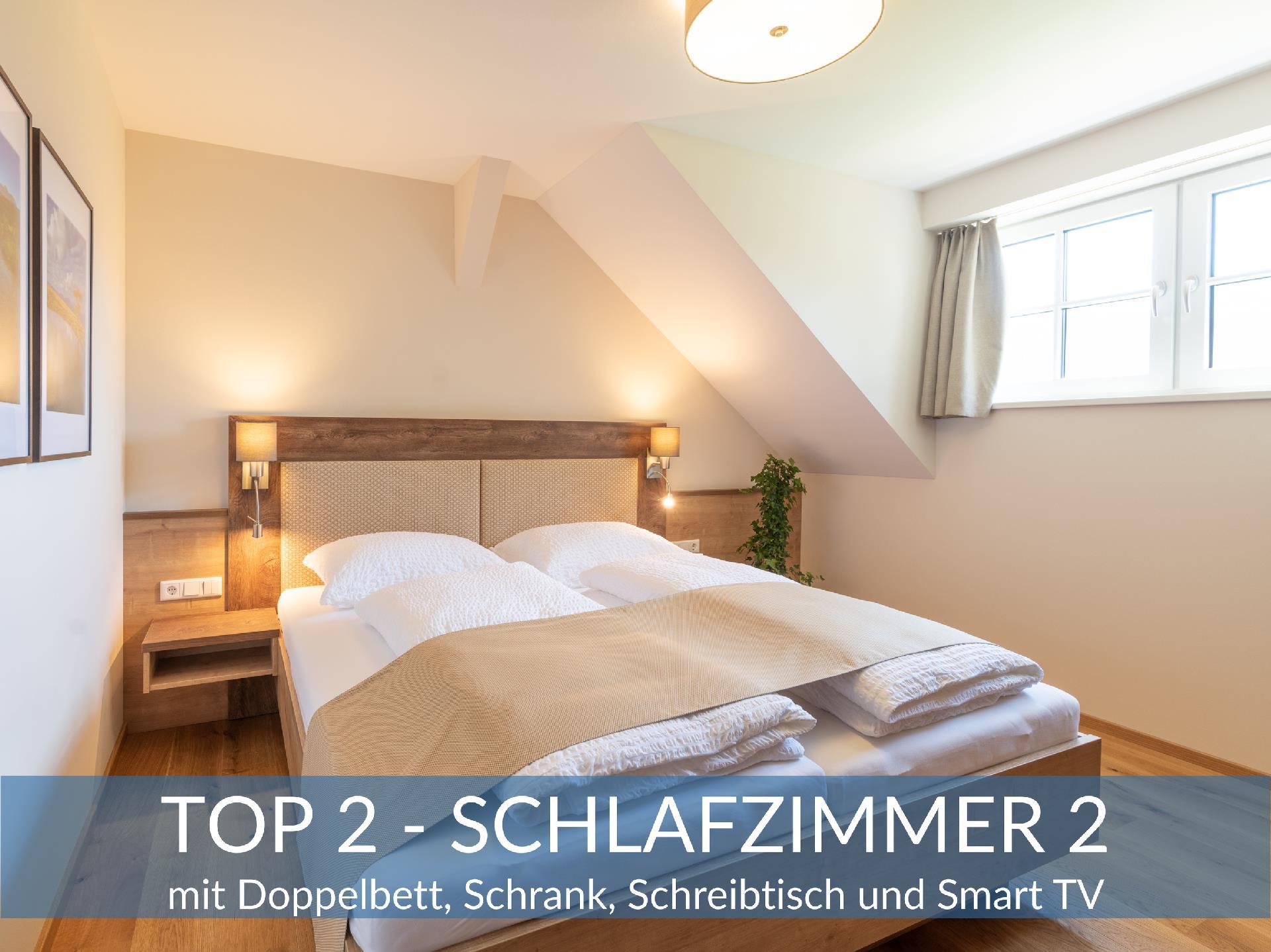 The "Heimathaus Dengg Top 2" holiday flat offers 65 m² of modern comfort for up to 4 adults. An inviting entrance area leads you into a fully equipped kitchen and a cosy living room with dining table, sofa and direct access to the balcony, from where you can enjoy a wonderful view of the garden. Two bedrooms are furnished with comfortable 180x200 cm beds, desks, wardrobes and Smart TVs. Underfloor heating provides cosy warmth throughout the flat.