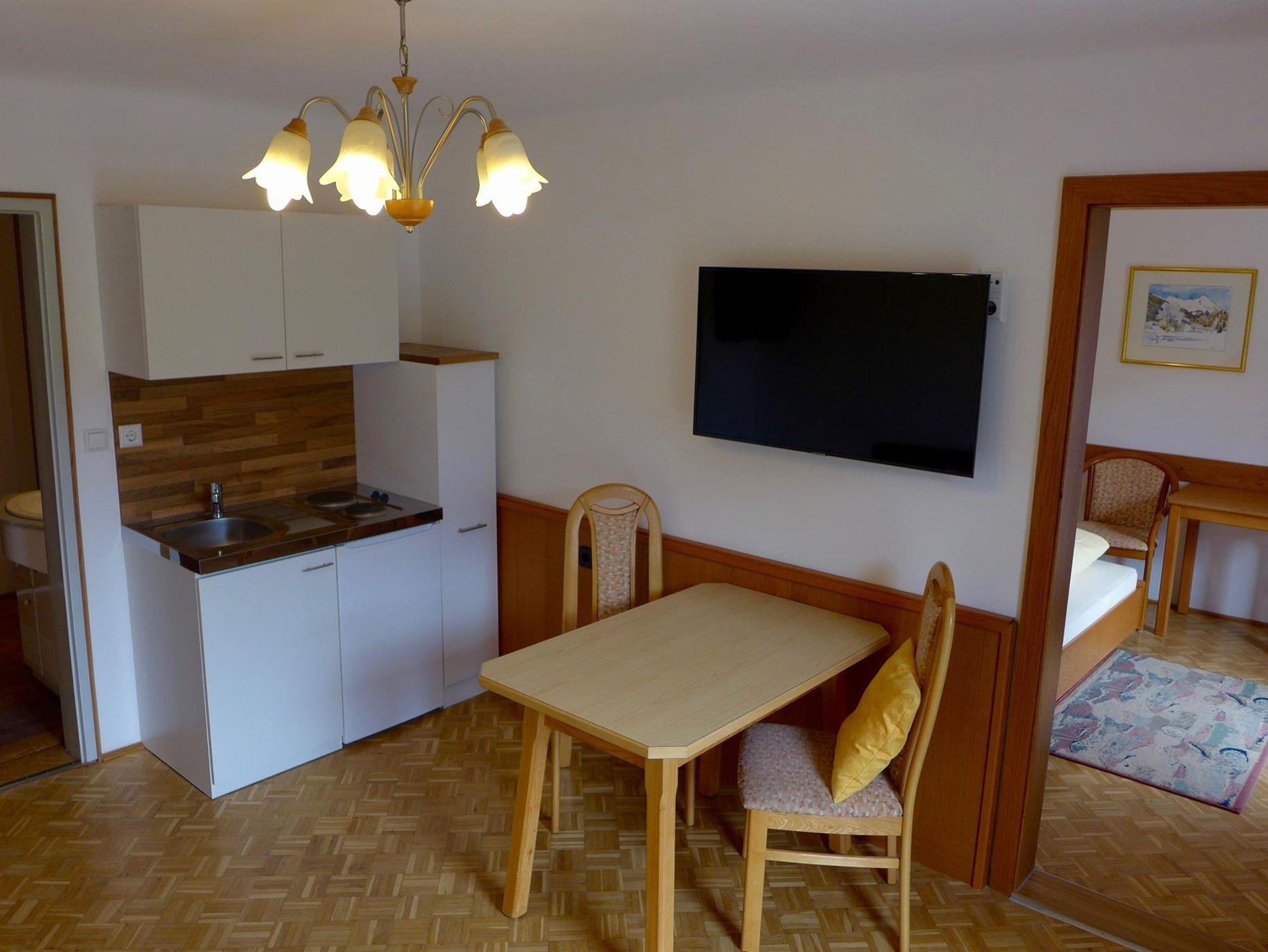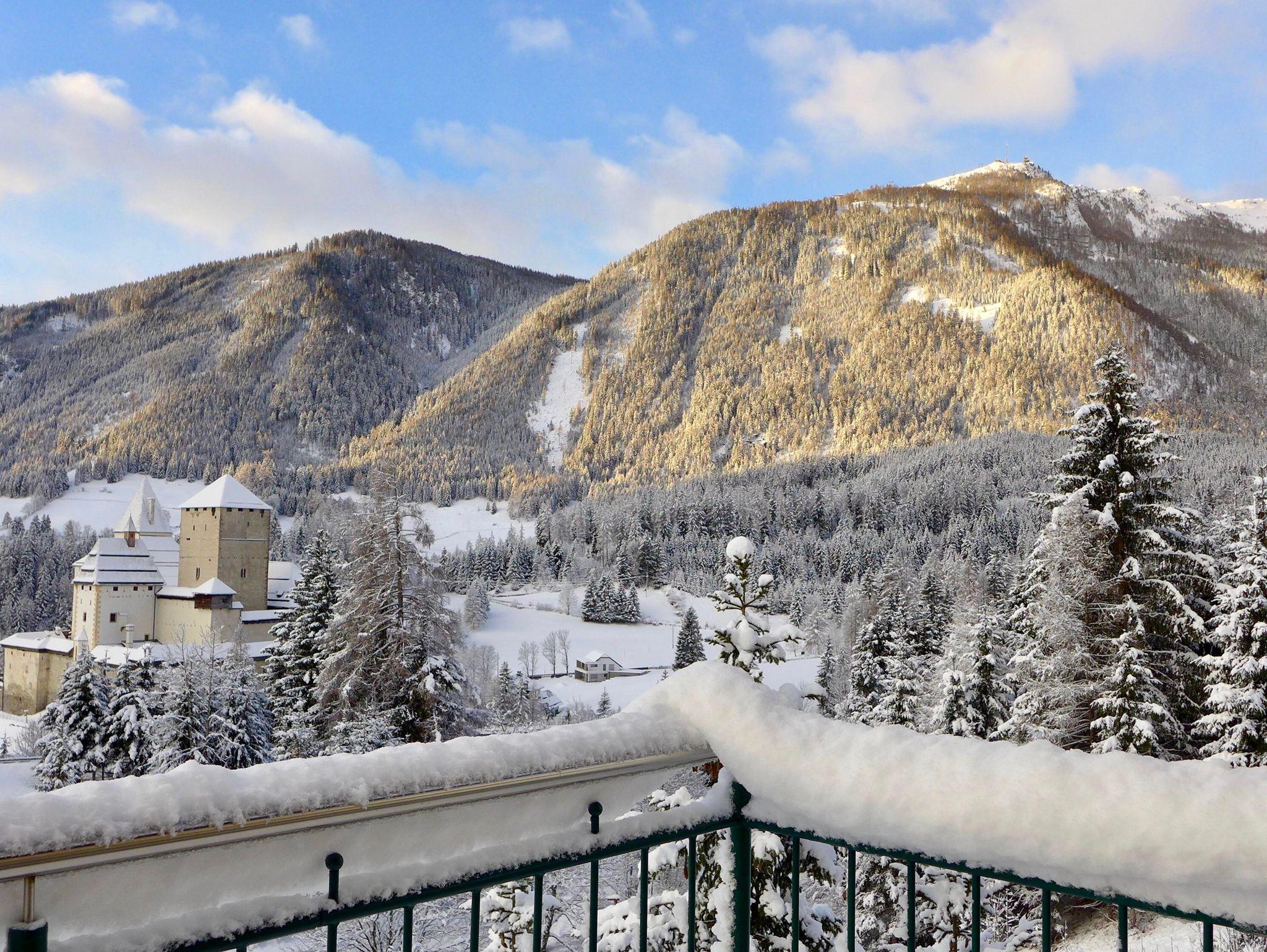 Das Apartment Alpenkönig bietet mit 80 m² Platz für 4-6 Personen mit 2 Schlafzimmer. Jedes Schlafzimmer ist mit Dusche und WC, einem Waschbecken mit Unterbau und großem Spiegel, Haartrockner, Safe, Hand- Badetücher und Bettwäsche ausgestattet. Das Wohnzimmer (Couch, Couchtisch, Flatscreen) und die Küche aus Vollholz (Kühlschrank und E-Herd, Geschirrspüler, Kaffeemaschine, Wasserkocher, Mikrowelle, ausreichend Geschirr und Besteck) sind durch einen Raumteiler getrennt. Großzügiger Esstisch! Offenes Wohnen im Landhausstil! 2 TVs! Parkettböden! Sie erreichen das Appartement bequem mit dem Lift oder die Treppe. Vom Balkon (Tisch, Sessel, Schirm) genießt man einen traumhaften Rundumblick auf die Burg, den Ort, die Berge und das Tal.