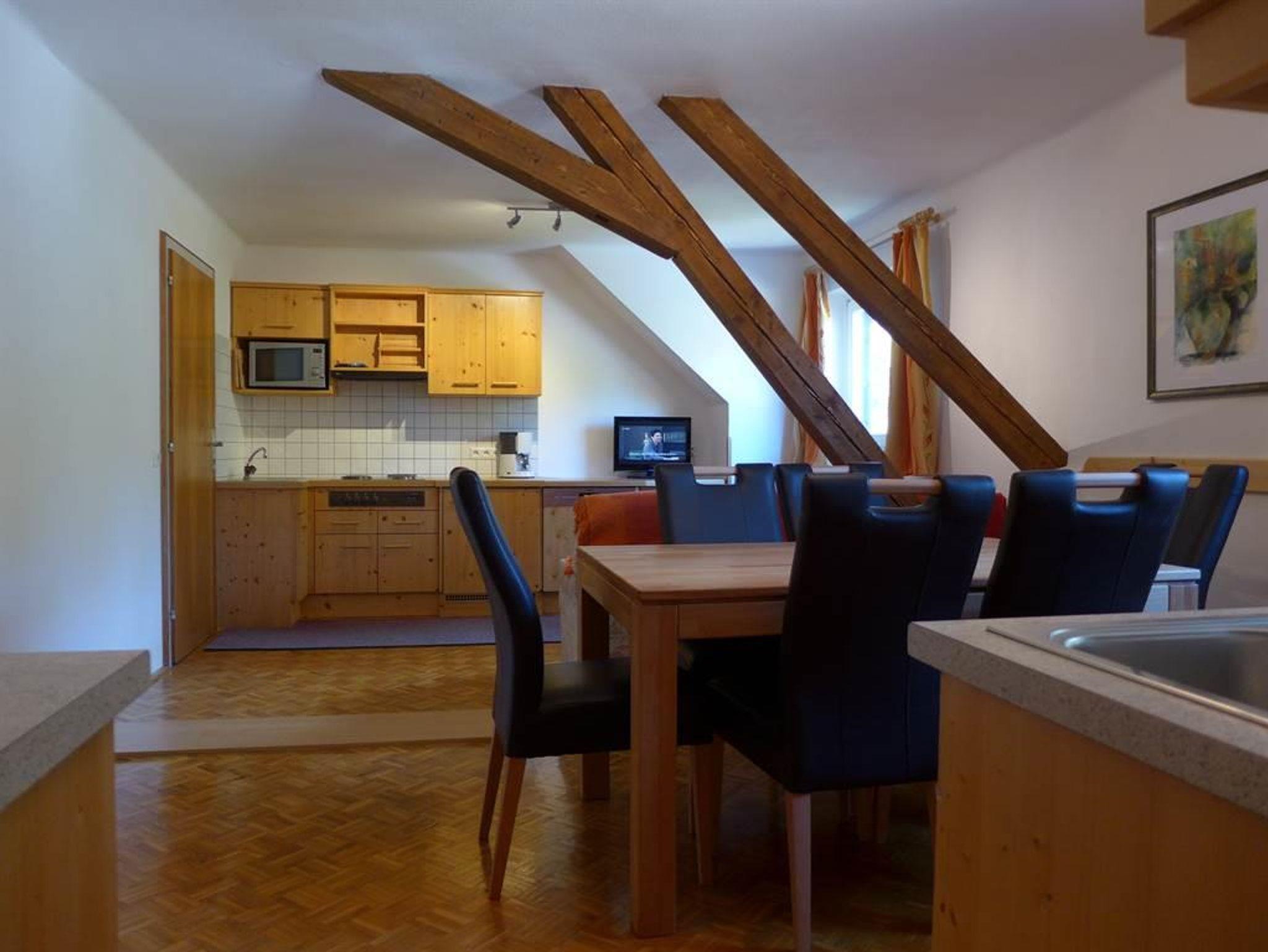 Das Apartement Hirschensprung bietet mit 90m² Platz für bis zu 7 Personen; großer Vorraum mit Garderobe und Leseecke, 3 Schlafzimmer, 3 Badezimmer mit Dusche und WC, Waschbecken mit Unterbau und großem Spiegel, Fön, Safe, gemütliche, gut ausgestattete Wohnküche aus Vollholz (Mikro, Kaffeemaschine, Wasserkocher, 2x E-Herd, 2 Kühlschränke, Geschirrspüler usw.) und Wohnbereich mit Couch und Flatscreen, großer Esstisch, 3 TVs, Radio, Parkettböden. Offenes Wohnen im Landhausstil, Wohnbereich, Essbereich und Küche sind in einem großen Raum mit Raumteiler. Das Appartement befindet sich im zweiten Stock. Sie erreichen es bequem mit dem Lift oder über die Treppe. Von jedem Fenster genießt man eine beeindruckende Aussicht auf Burg, Ort oder Berg!