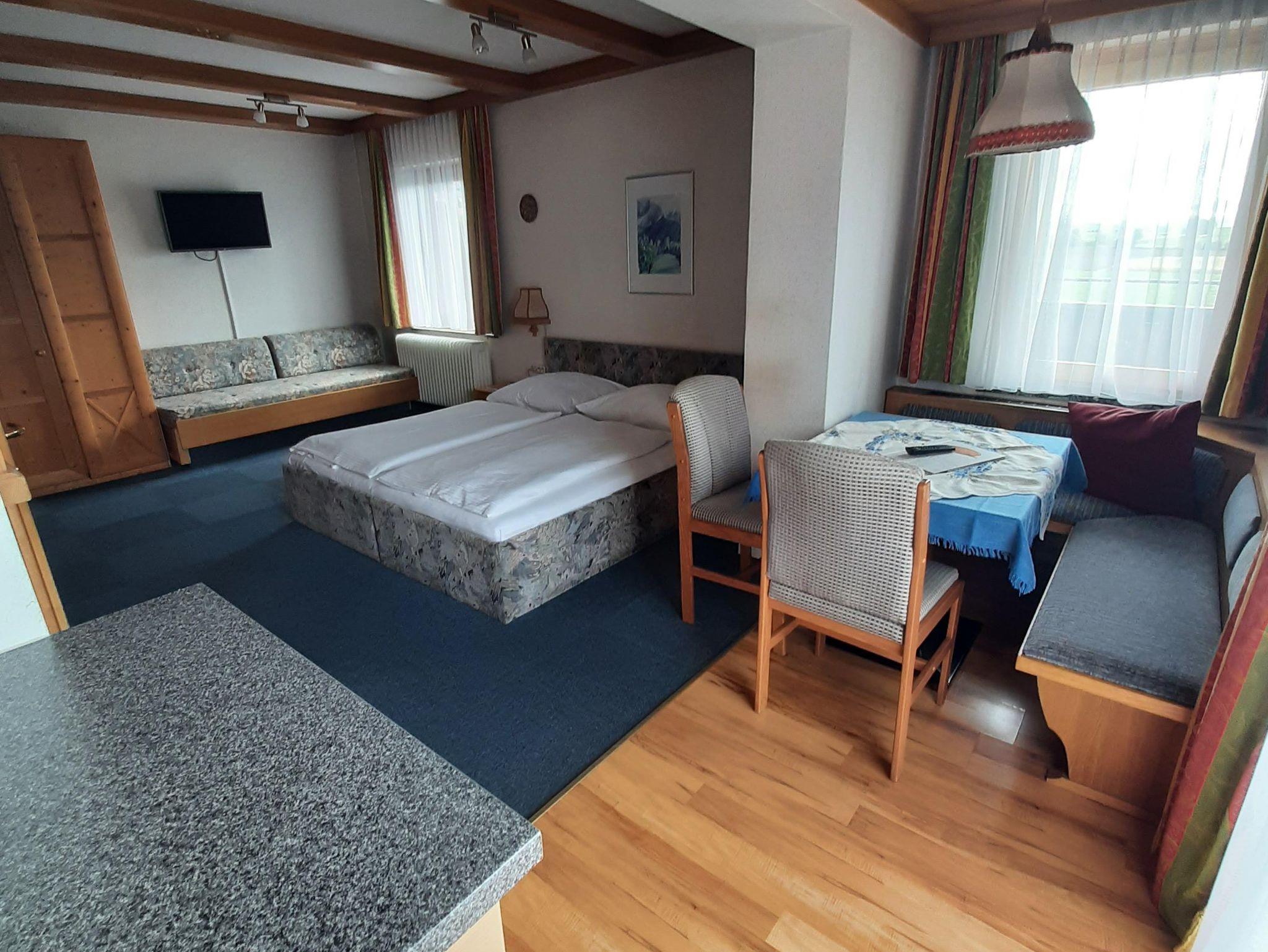 Apartment und/oder Familienzimmer bestehend aus Wohn-Schlafraum für 2 Personen mit Kochnische, Sitzecke, Dusche/WC, teilweise Terrasse