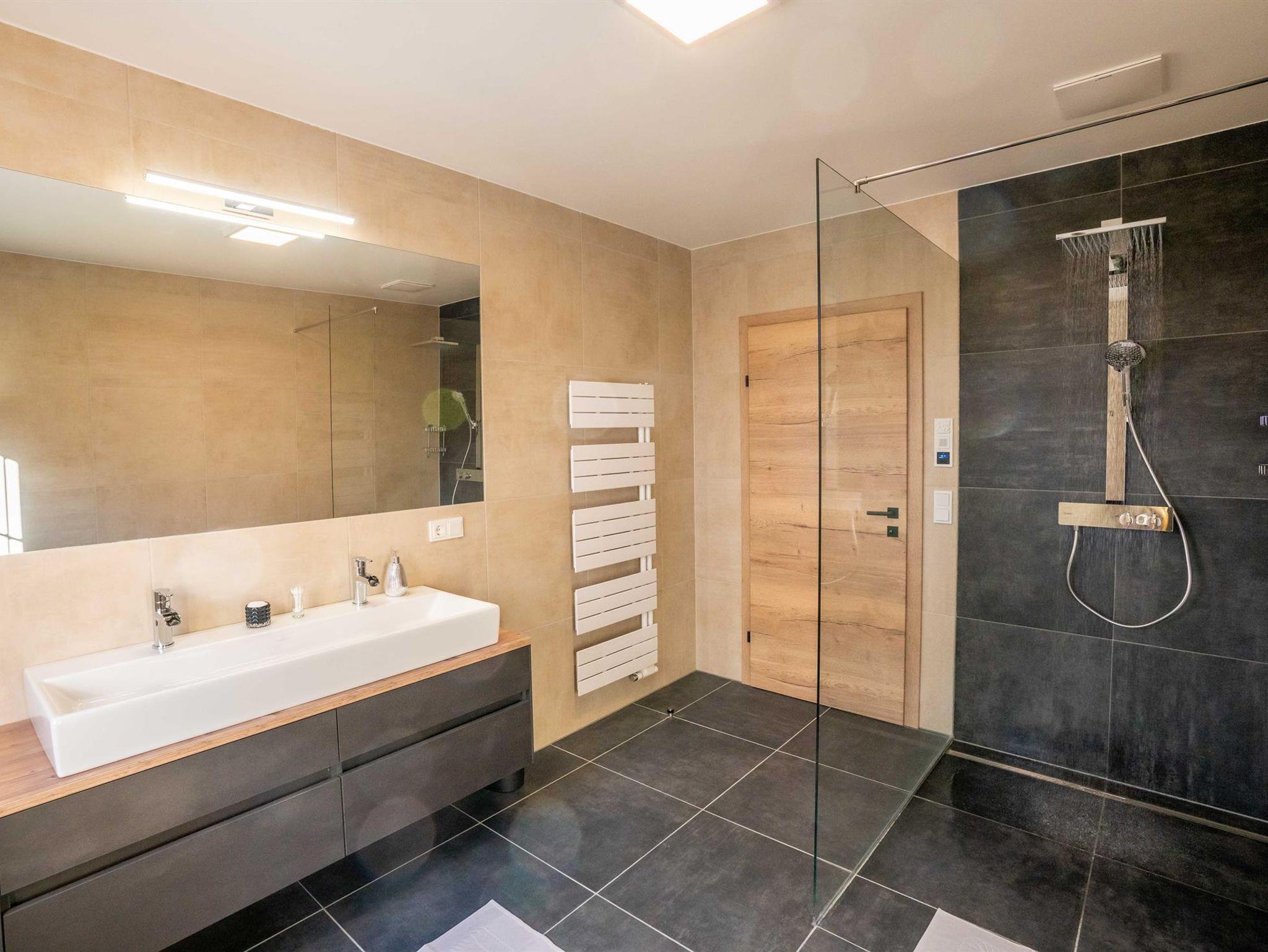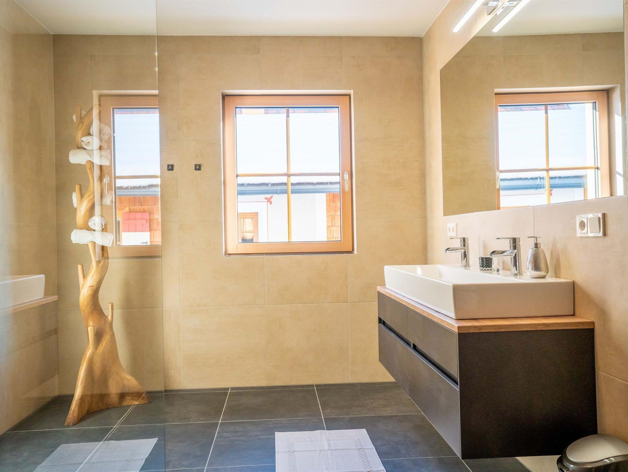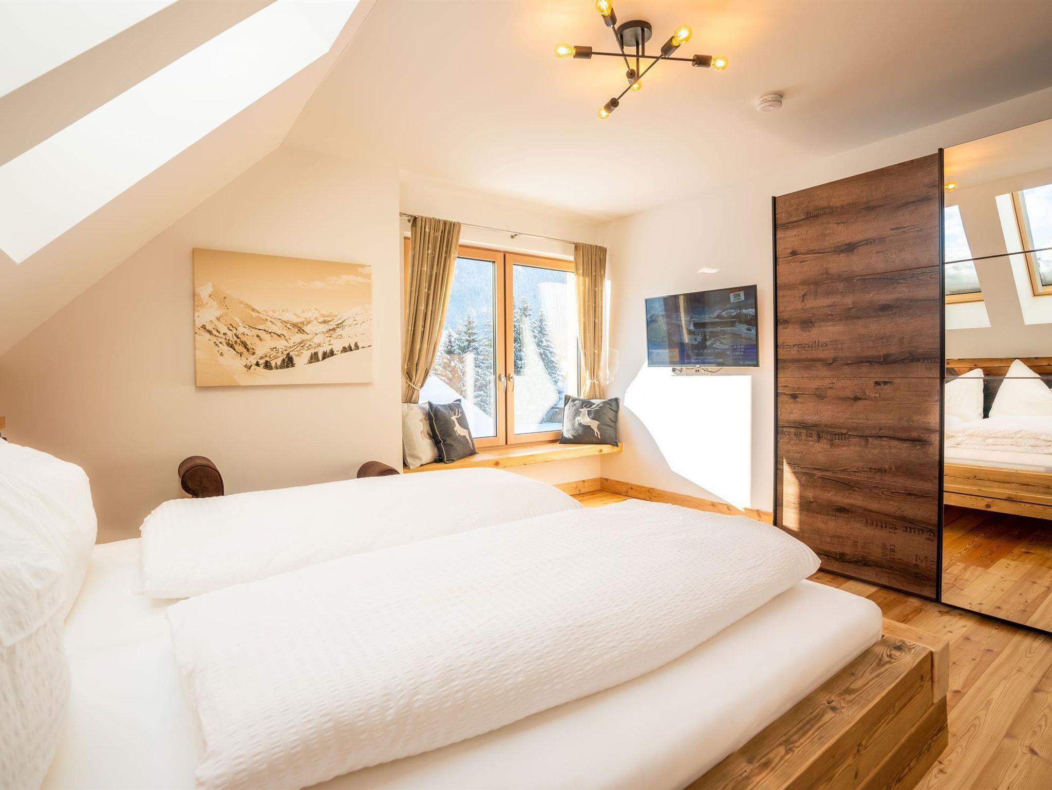 Unser südseitig gelegenes Appartement bietet auf 105 m2 Platz für insgesamt 6 Personen in 3 Schlafzimmern. Ein großzügiges Bad mit Bodenheizung und zwei separate WC-Räume sowie ein großer, modern ausgestatteter Koch-, Wohn- und Essbereich mit Balkon und Bergblick runden die südliche Ferienwohnung ab.