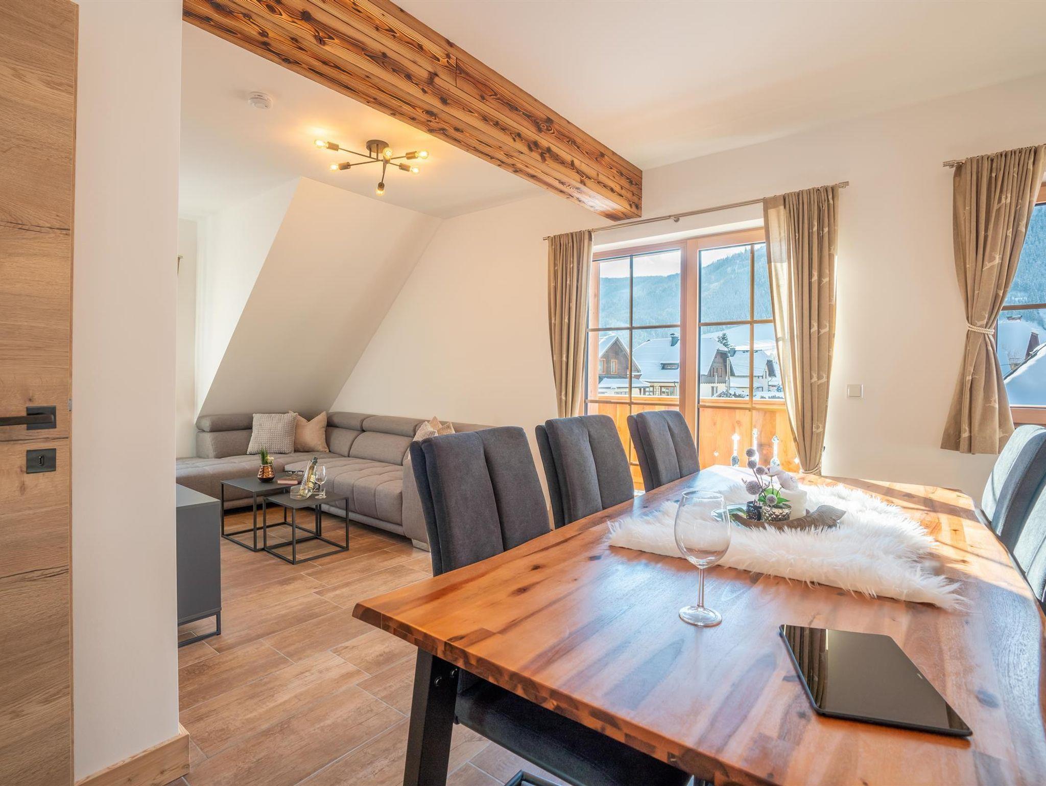 Die Wohnung ist auf zwei Stockwerke aufgeteilt. Eine moderne Küche mit E-Herd, Backrohr, Geschirrspüler, Kühlschrank und Kaffeemaschine lädt zu kreativen Kochsessions ein und ein großer Esstisch für 6 Personen bietet genügend Platz für gemeinsames Essen und Zusammensitzen. Der Wohnbereich überzeugt mit einer großen Wohnlandschaft mit Smart-TV und kostenlosem WLAN.