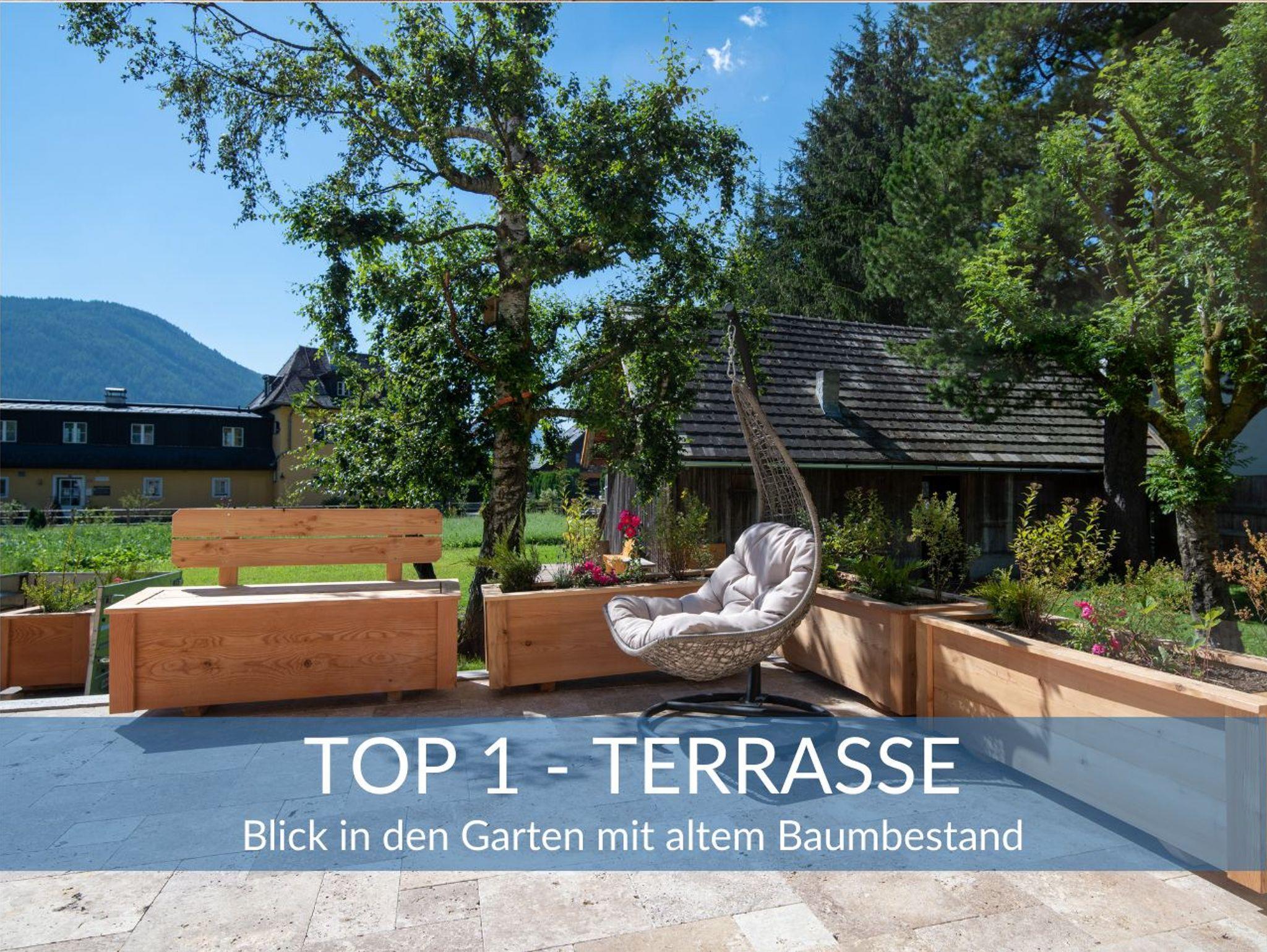 Top 1 Wohnung mit Terrasse und Garten Zaunkönig (EG) Diese Wohnung liegt im Erdgeschoß und besticht durch eine Terrasse in unserem großzügigen Garten. Insgesamt umfasst die Wohnung 65 m2 geteilt in eine hochwertig ausgestattete Wohnküche, 2 Schlafzimmer und ein wunderschönes Badezimmer mit komfort Dusche sowie einem separaten WC. Die Wohnung bietet Platz für bis zu 5 Personen.