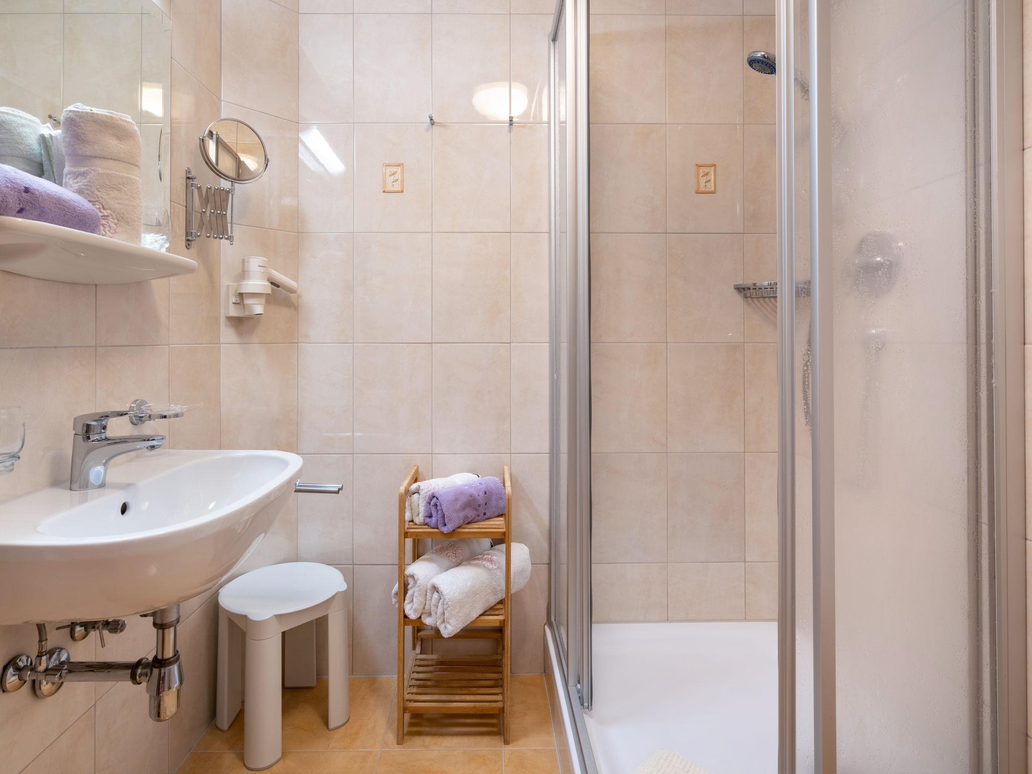 Apartment block "Rosa". 11 apartments in the property. 150 m from the centre of Mayrhofen, 5 km from the centre of Zell am Ziller, 4 km from the centre of Finkenberg, in a central position. For shared use: property 500 m2. In the house: lift, storage room for skis, central heating system, ski boot dryer. Breakfast and half board possible (extra). Parking (for 15 cars, limited number of spaces), communal covered parking at the house. Supermarket 1 km, restaurant 200 m, bus stop "Mayrhofen Karg Haus" 120 m, railway station "Mayrhofen Bahnhof" 700 m, outdoor swimming pool, indoor swimming pool 30 m. Golf course (18 hole) 20 km, mountain railway 500 m, ski lift 2 km, ski bus stop 30 m, ski school 400 m, cross country ski track 500 m. Nearby attractions: Zillertaler Höhenstraße, Adlerbühne Ahorn, Fichtenschloss. Well-known ski regions can easily be reached: Horbach/Penken, Ahornbahn, Zillertal Arena. Well-known lakes can easily be reached: Achensee. Hiking paths: Ahorn. The owner does not accept any groups. The owner does not accept any youth groups. Please note: the owner lives in the same residence. Pets only allowed in summer. 1 parking space per apartment. Guests can make use of the Mayrhofen adventure pool all year round. For stays of 14 nights or more, a mid stay cleaning service is provided and includes a change of towels and bed linen. Dinner (4-course menu + salad buffet) can be booked individually on site at a cost of 19 EUR per person. Breakfast and half board (breakfast + evening 4-course menu + salad buffet) can also be booked through the owner and takes place at the Hotel Rose approx. 200 metres away.