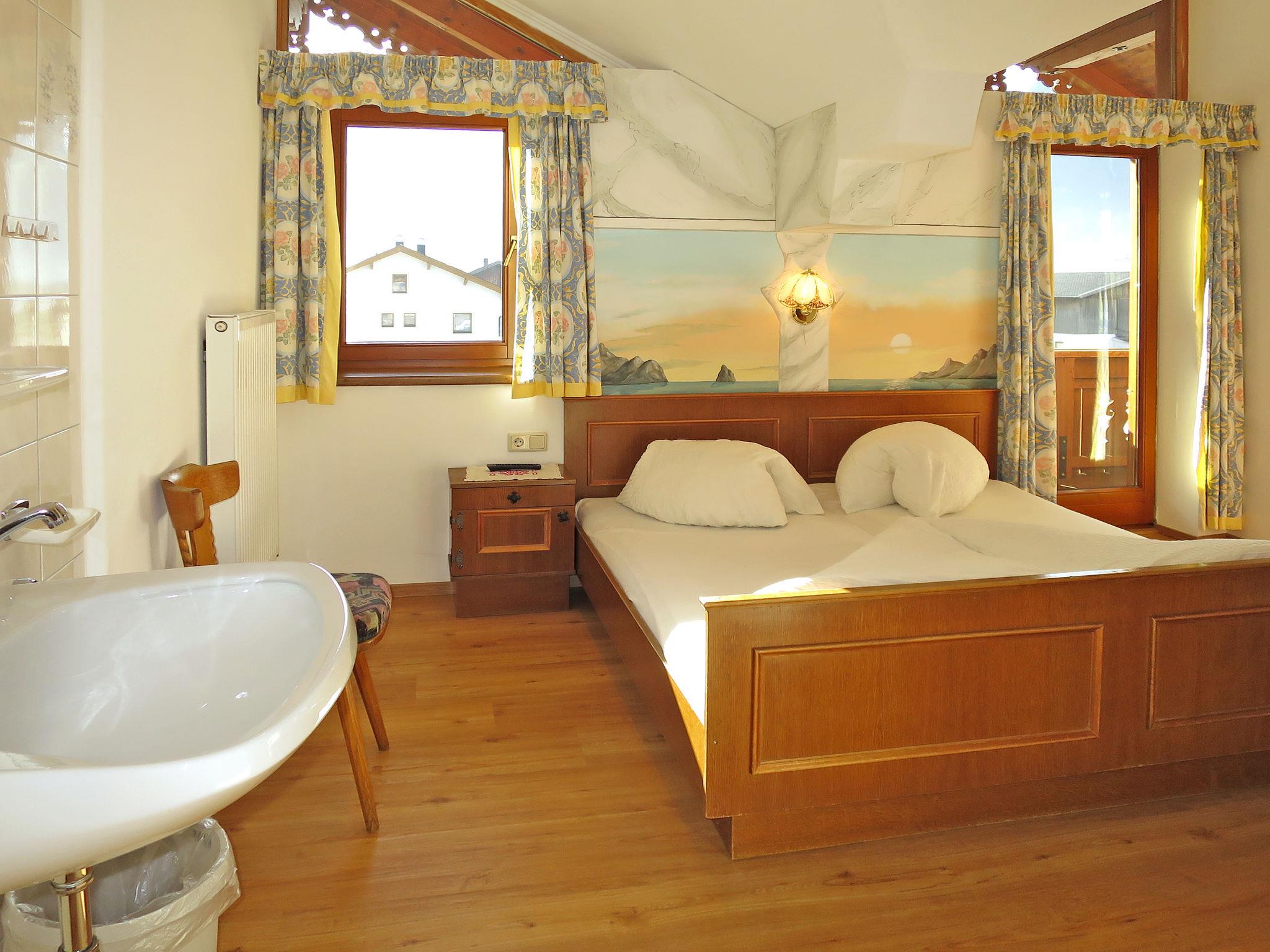 "Heisenhaus", 4-room apartment 65 m2 on 2nd floor. Practical and rustic furnishings: 1 room with 1 double bed. Exit to the balcony. 1 room with 1 x 2 bunk beds. Exit to the balcony. 1 room with 1 double bed, shower/WC and satellite TV (flat screen). Exit to the balcony. Kitchen-/living room (oven, 4 ceramic glass hob hotplates, kettle, electric coffee machine) with dining nook and satellite TV (flat screen). Exit to the balcony. Shower/WC. Heating. Facilities: baby cot. Internet (WiFi, extra). Please note: one double bedroom is outside the apartment. Smoke alarm. When there are less than the maximum number of guests staying at the property, not all of the housing units will be available for use.