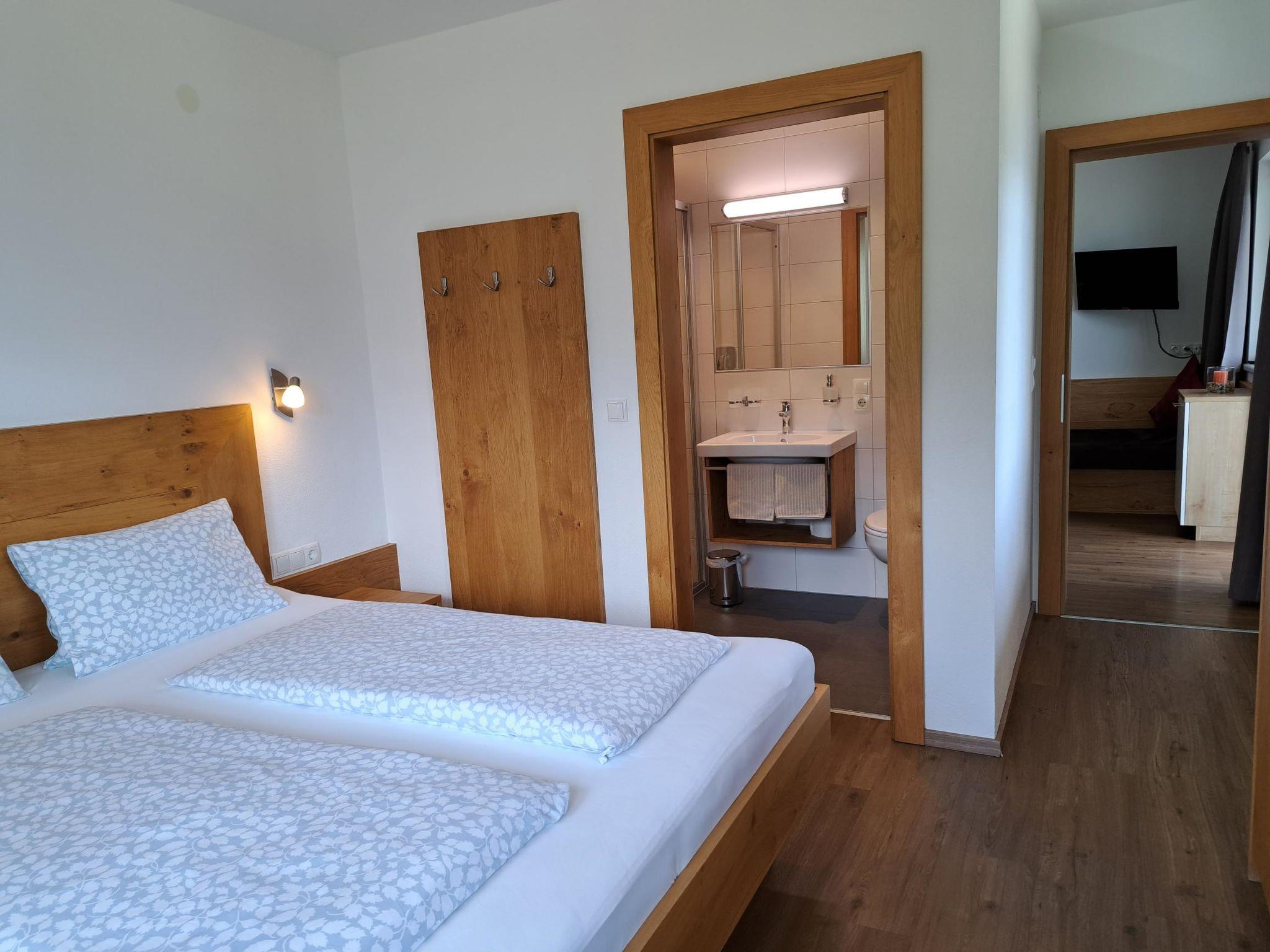 "Anton", 3-room apartment 60 m2 on 2nd floor. Bright, tasteful furnishings: 1 double bedroom with shower/WC. Exit to the balcony. 1 double bedroom with shower/WC. Kitchen-/living room (oven, dishwasher, 4 ceramic glass hob hotplates, kettle, electric coffee machine) with 1 sofabed, dining nook, satellite TV and radio. Exit to the balcony. Oil heating. Balcony 15 m2. Balcony furniture. Beautiful panoramic view of the mountains and the valley. Facilities: Internet (WiFi, free). Parking. Please note: non-smokers only. Private entrance, smoke alarm, fire extinguisher.