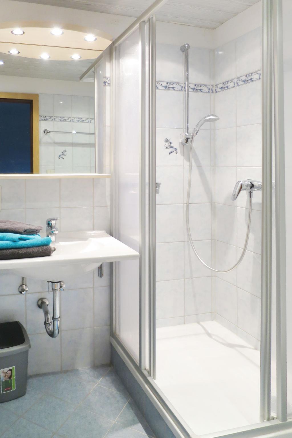 "Eberharter", 7-room house 200 m2 on 2 levels. Practical and rustic furnishings: living/dining room with satellite TV and radio. Exit to the terrace. Kitchen (oven, dishwasher, 4 ceramic glass hob hotplates, microwave, freezer, electric coffee machine). Sep. WC. 2nd upper floor: 6 double bedrooms, each room with shower/WC. Exit to the balcony. 1 room with 1 bed, 1 double bed and shower/WC. Exit to the balcony. 2 balconies, terrace. Terrace furniture. Facilities: children's high chair, baby cot. Internet (WiFi, extra). Please note: non-smokers only. Smoke alarm.