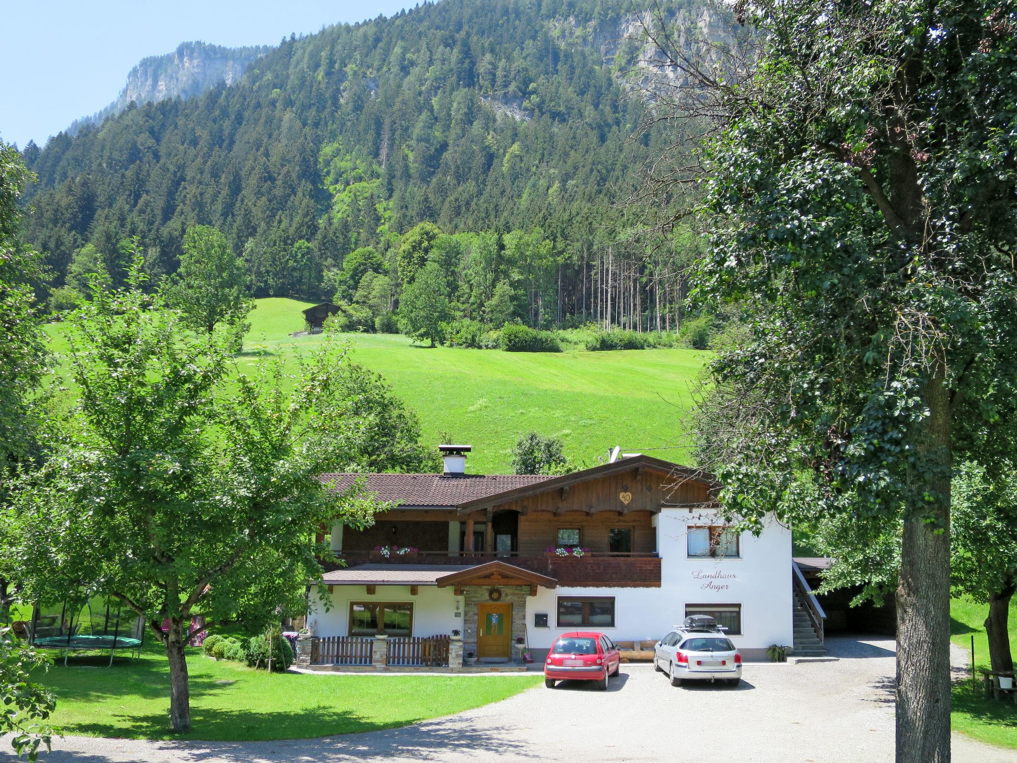 Burgstall 2 km from Mayrhofen: 2-family house "Anger", 2 storeys. 2 apartments in the property. In the district of Burgstall 2 km from the centre of Mayrhofen, 7 km from the centre of Zell am Ziller, 200 m from the river. For shared use: property, garden (not fenced), meadow. In the house: storage room for skis, ski boot dryer. Bread roll service. Stepped path to the house. Parking (for 3 cars) on the premises. Supermarket 2.5 km, bus stop "Burgstall Feuerwehr" 150 m, railway station "Mayrhofen Bahnhof" 2 km, outdoor swimming pool 2.5 km, indoor swimming pool 2.5 km. Golf course (18 hole) 20 km, mountain railway, ski lift 950 m, ski bus stop 50 m, cross country ski track 200 m. Please note: the owner lives in the same residence.