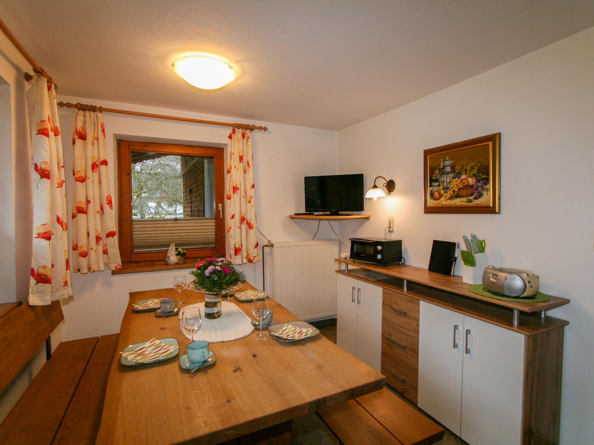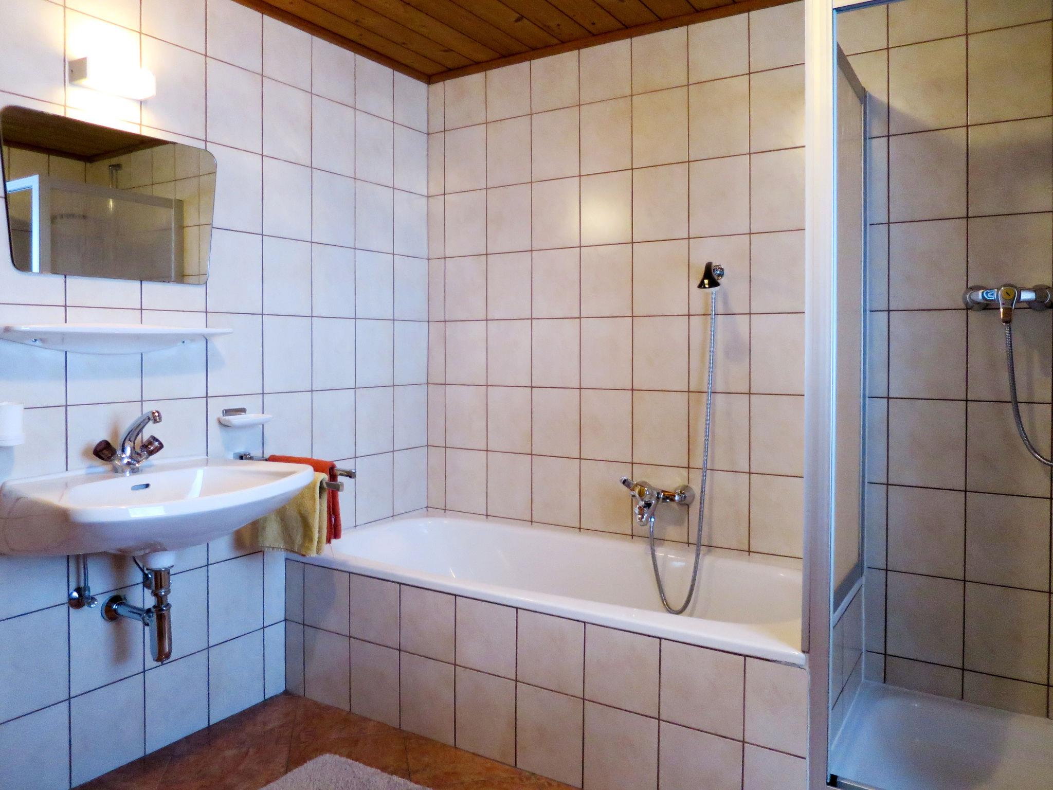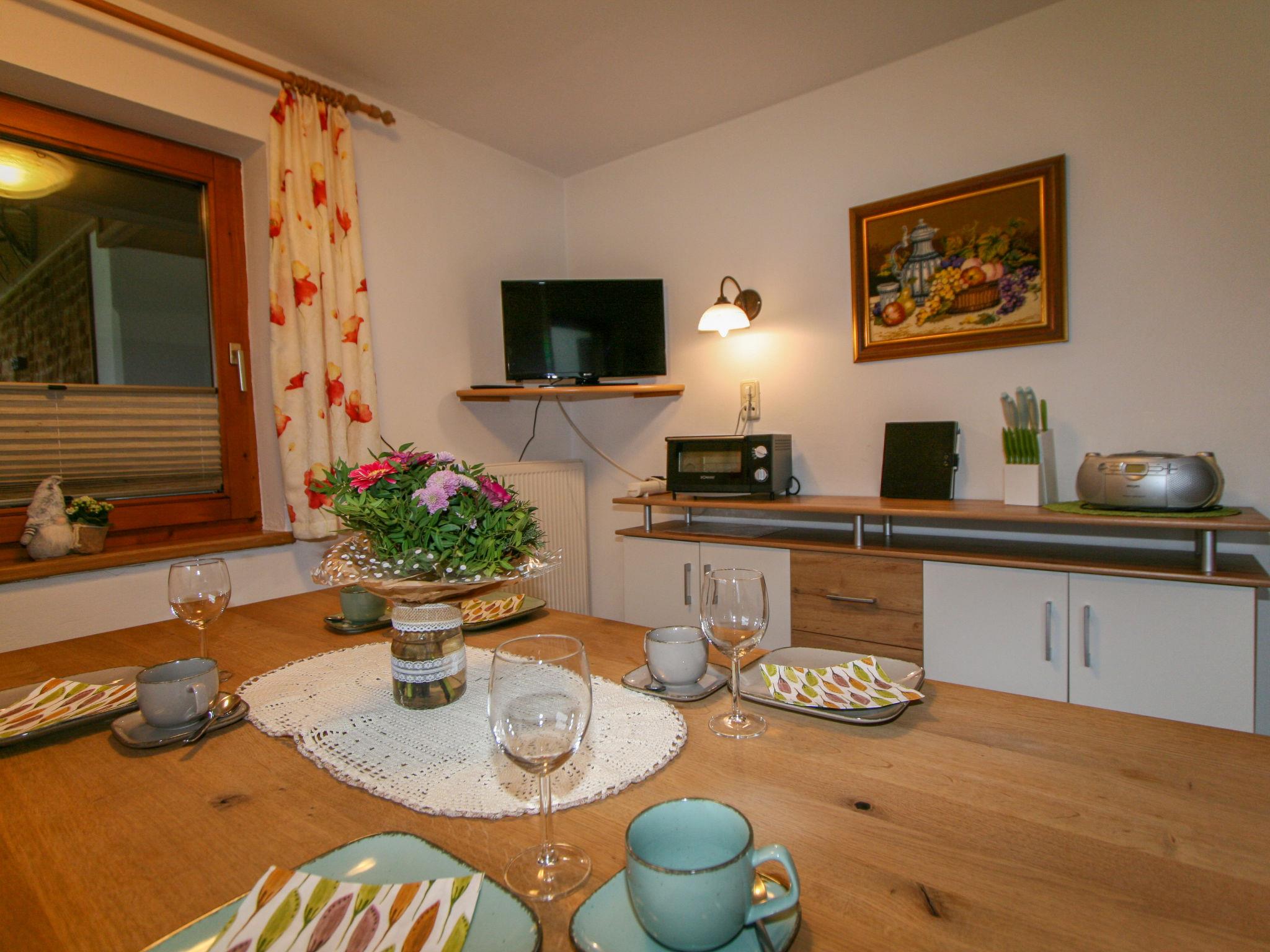 "Anger", 4-room apartment 80 m2 on 1st floor. Practical and rustic furnishings: 1 double bedroom with hand-basin and satellite TV. Exit to the balcony. 1 double bedroom with hand-basin. Exit to the balcony. 1 room with 1 x 2 bunk beds. Kitchen-/living room (dishwasher, 4 ceramic glass hob hotplates, toaster, kettle, microwave, electric coffee machine) with dining nook, satellite TV and radio. Exit to the balcony. Bath/shower/WC. Oil heating. Balcony 24 m2. Balcony furniture, deck chairs (2). Panoramic view. Facilities: children's high chair, baby cot. Internet (WiFi, free). Please note: maximum 1 pet/ dog allowed. Private entrance.