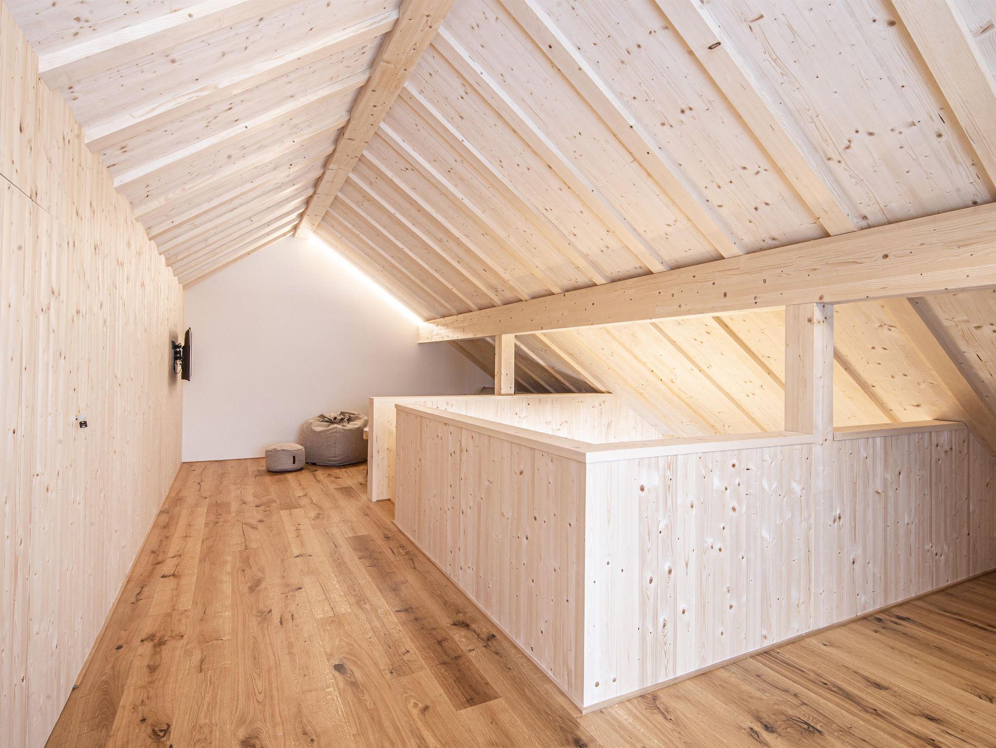 Das verwendete Fichtenholz bringt heimelige und gemütliche Atmosphäre ins Ferienhaus.