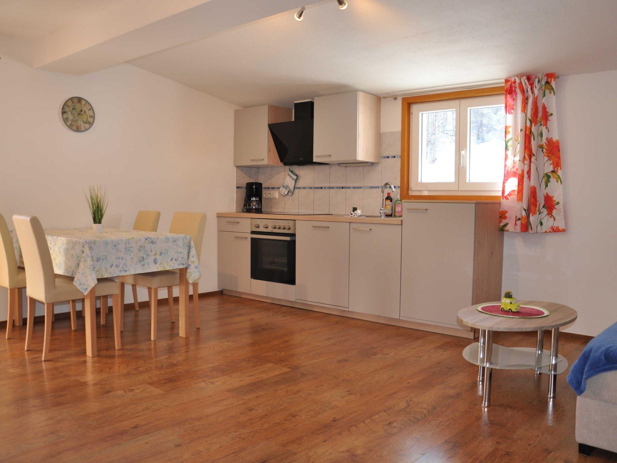 Das Apartment im 2. Obergeschoss für 3 Personen verfügt über ein Schlafzimmer mit Doppelbett (180x200), ein Badezimmer mit Dusche/WC und ein Wohnraum mit Küche und Schlafsofa. Der Balkon mit gemütlicher Sitzecke bietet einen herrlichen Blick in die Bergwelt.