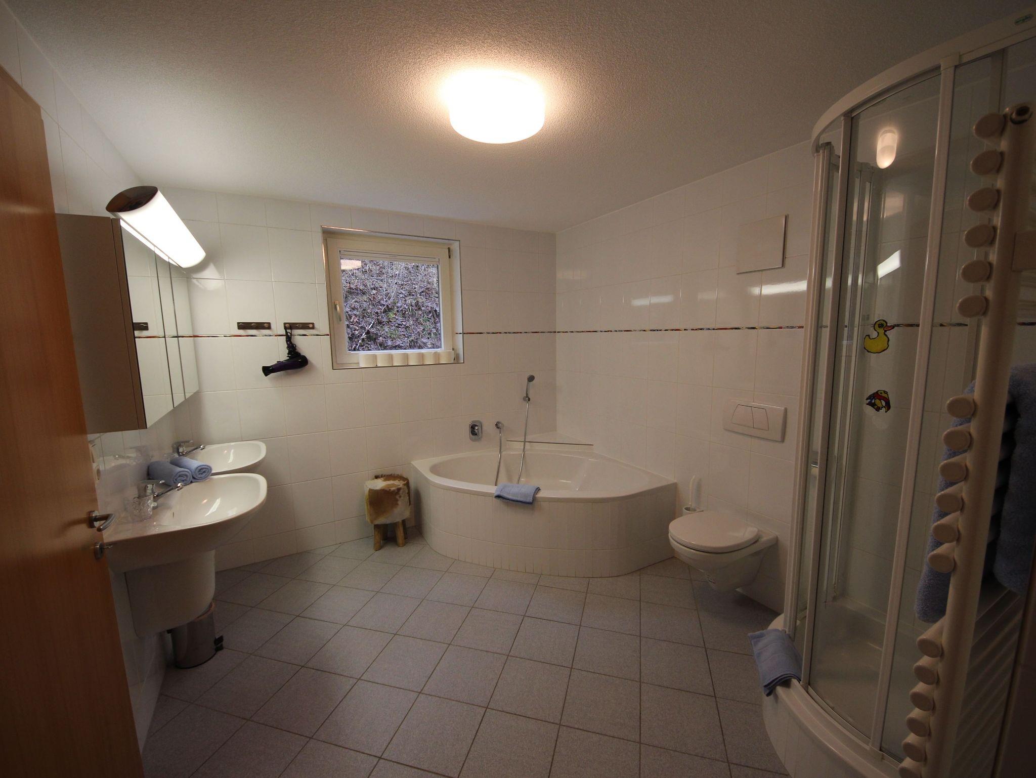 Bad, Dusche und WC im OG, einem Badezimmer im EG und einem separaten WC