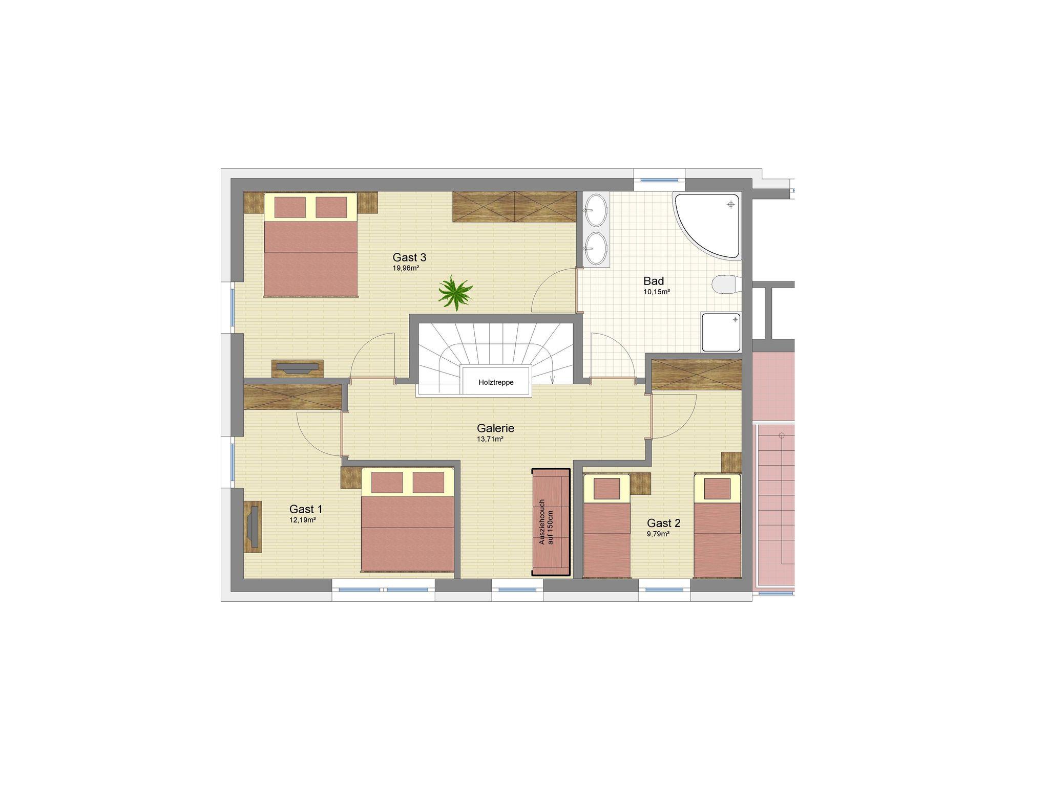 einer Galerie mit Sofa (Ausziehcouch 150x200cm), einem Badezimmer mit