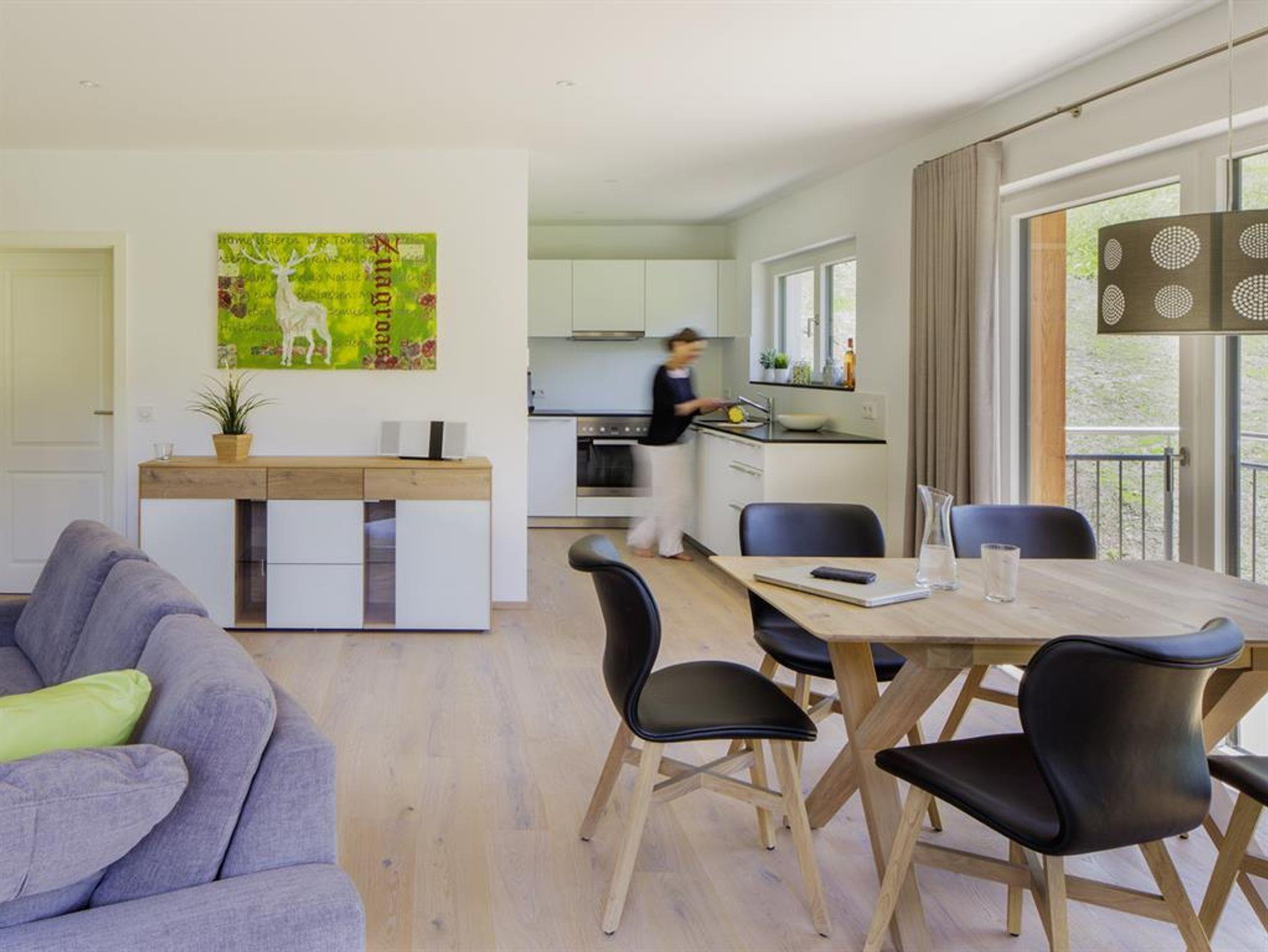 Die Ferienwohnung Zwölferkopf liegt im DG der Walser Lodge und lädt Sie ein, im hellen Wohn-/Küchen-/Essbereich mit den bodentiefen Fenstern das atemberaubende Bergpanorama zu genießen. Der große Eckbalkon davor lädt zum Sonnenbaden ein. Genießen Sie die hochwertigen fußrandlosen Doppelbetten mit extralangen Deckbetten (220 cm). Es gibt ein modernes Bad mit Dusche, WC und Doppelwaschbecken, dazu noch ein separates WC. Entspannen Sie im Saunabereich mit schönem Panorama-Ruheraum!