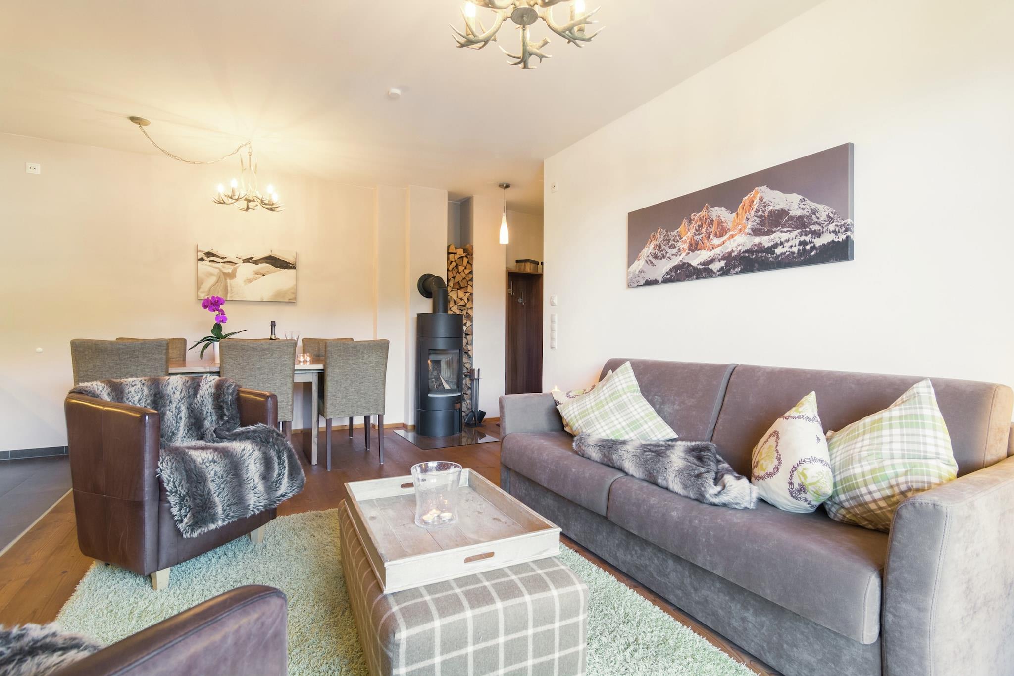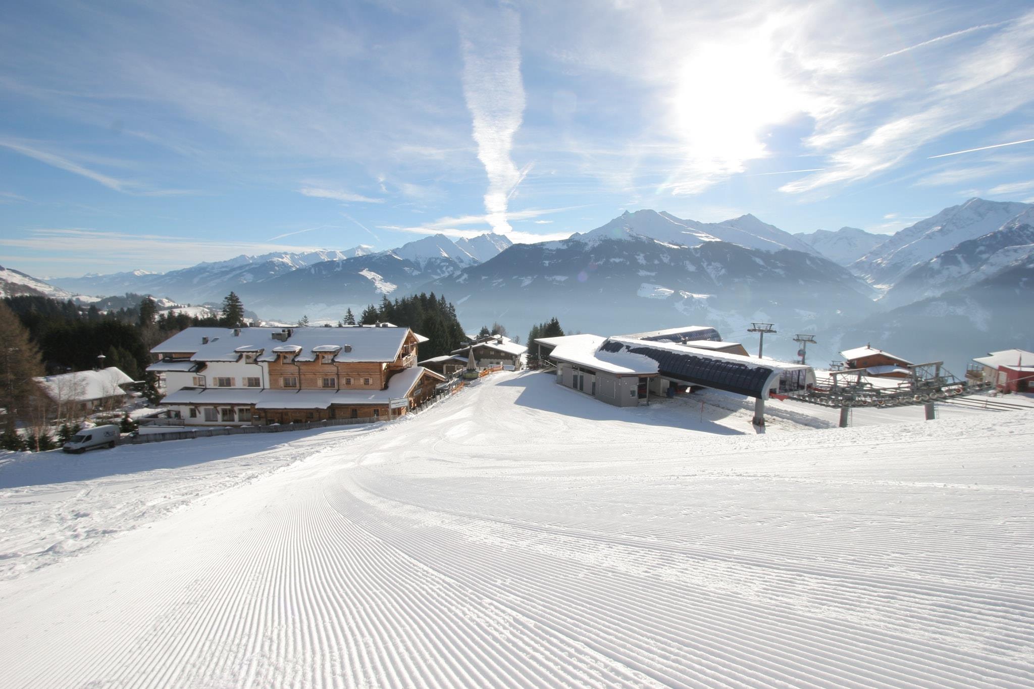 De unikke panoramahytter er beliggende på grænsen til Salzburgerland og Tyrol, på en snehøjde på 1200 meter. Unikt, fordi det er direkte på skråningerne af Kirchberg og Kitzbühel skiområder, og fordi midtbanen i "Panorama" gondolen ligger lige ved siden af. Du behøver ikke at håndtere ski busser eller linjer. Bare klik på dine ski lige ved lejligheden og skib lige tilbage til slutningen af dagen. Lejlighederne blev nybygget i 2010 og har en meget høj kvalitet finish. Marmor badeværelser moderne køkkener med alt muligt indbygget udstyr og hyggelige trægulve Denne lejlighed har en indendørs parkeringsplads, der er tilgængelig med elevator. Der er også et privat opbevaringsrum med boot-drivere. Den tilstødende restaurant giver dig mulighed for at bestille morgenmad, frokost eller middag. Der er gratis privat parkering i garagen. Der er også uden for parkeringspladsen gratis parkering.