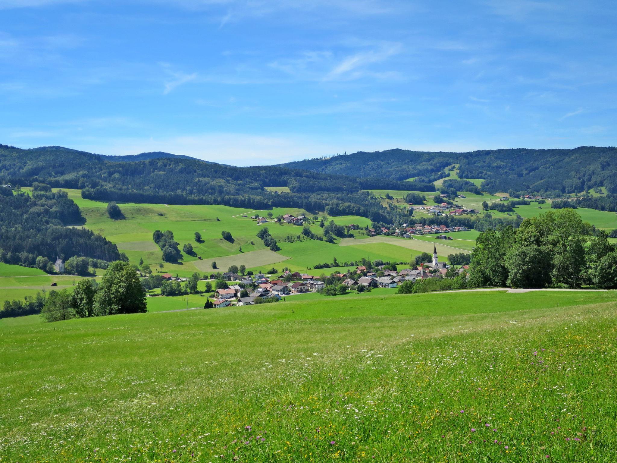 Large, rustic country house "Waldfrieden", surrounded by meadows and fields. In the district of Oberaschau 8 km from the centre of Mondsee, in an elevated position on top of a hill, 6 km from the lake, in the countryside. For shared use: property with lawn and plants, lawn for sunbathing. (slide, swing). In the house: restaurant, table tennis. Parking at the house at 30 m. Bus stop "Asfinang Rastplatz" 7.6 km, lake Attersee 7 km. Please note: Additional accommodations can be booked.