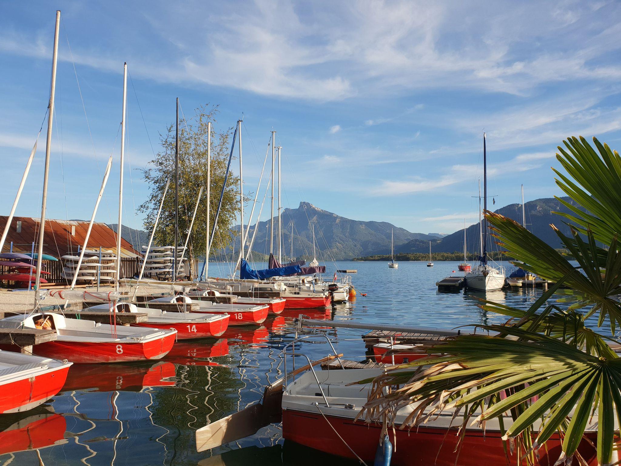 Die Apartments liegen direkt im Hafen der Segelschule Mondsee mit herrlichem Blick auf den See und die Berge.