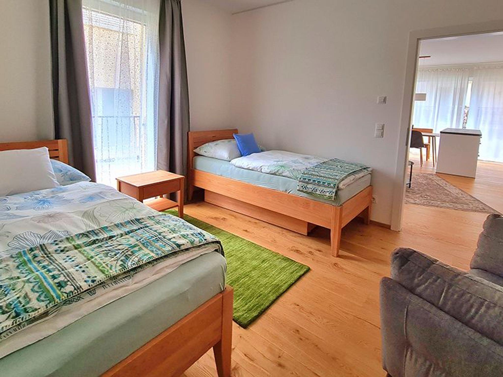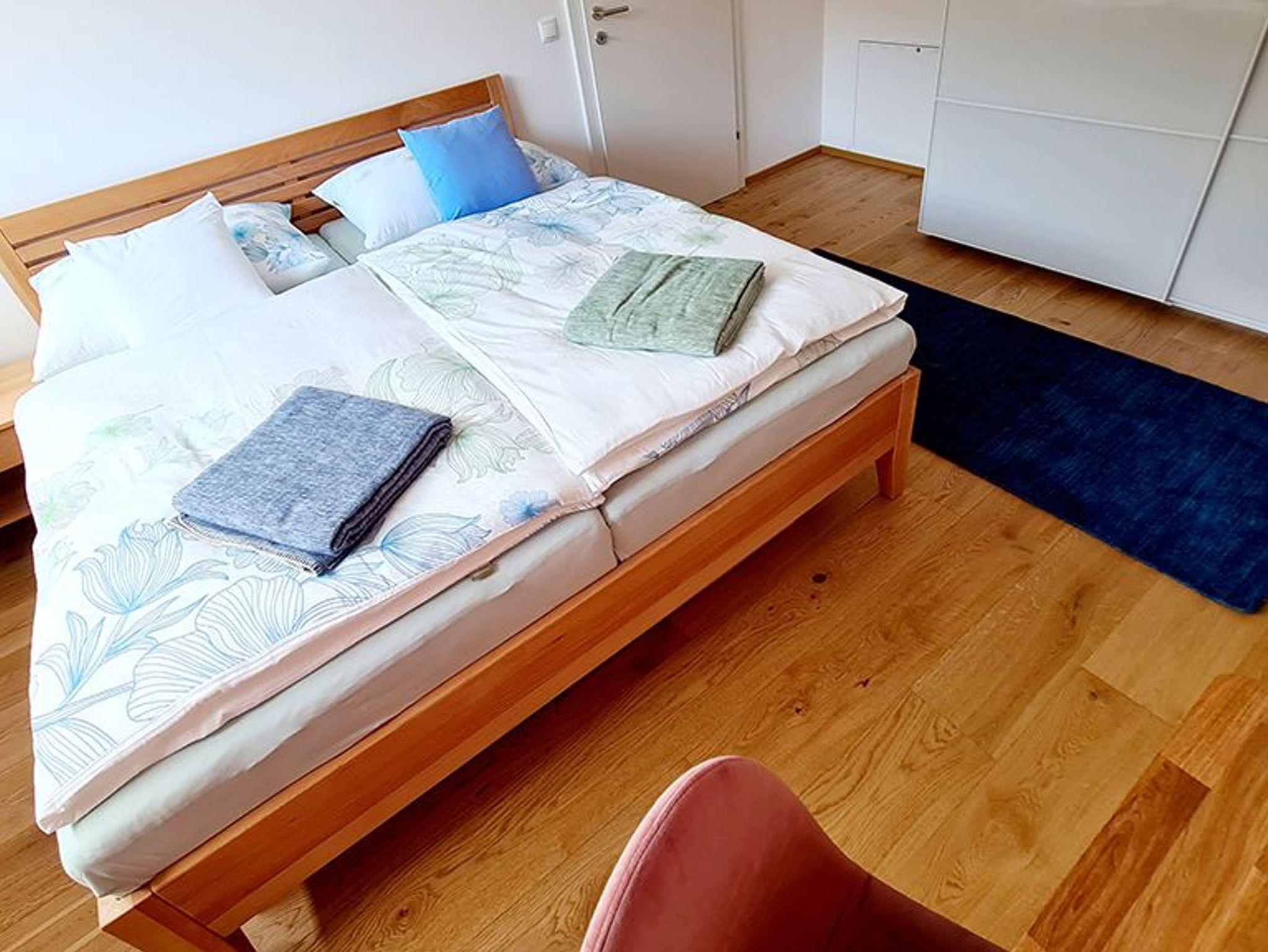 Die Ferienwohnung Maria befindet sich in einem 2020 neu errichteten Gebäude im sogenannten 'Obermarkt' von Mondsee, nur 3 Gehminuten vom historischen Marktplatz und der Basilika entfernt. Die Wohnung ist liebevoll modern eingerichtet und hat einen Balkon in Richtung Nordwesten. In der Wohnung finden Sie zwei Schlafzimmer, eines mit einem Doppelbett, eines mit zwei Einzelbetten. Es gibt ein getrenntes WC. Das Bad ist mit einer geräumigen Dusche und Handtuchheizkörper ausgestattet. Handtücher und Bettwäsche werden wöchentlich zur Verfügung gestellt. Sollten Sie einen häufigeren Wechsel benötigen, bitten wir um Information vor Anreise. Die Ferienwohnung ist sehr geräumig, hat einen großen Wohn-Essbereich mit einem Esstisch für 5 - 6 Personen. Sie finden in der Wohnung eine Waschmaschine, Wäscheständer zum Trocknen Ihrer Wäsche, Bügelbrett und Bügeleisen, in der Küche eine Mikrowelle, Toaster, Wasserkocher und Filter-Kaffeemaschine.