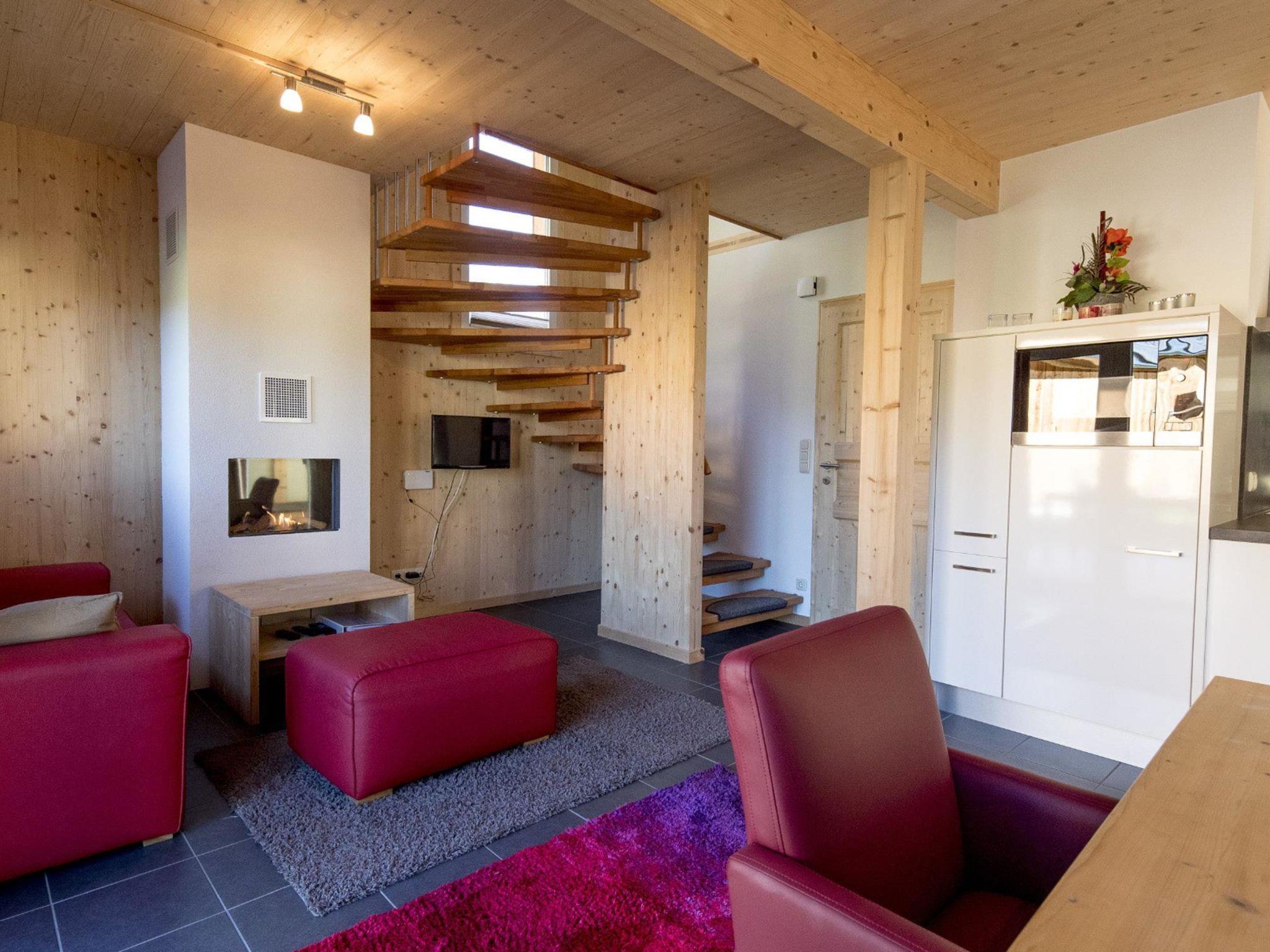 "Typ 70", 4-room chalet 70 m2. Spacious, tasteful furnishings: living/dining room with dining table and satellite TV (flat screen). Open kitchen (oven, dishwasher, 4 ceramic glass hob hotplates, microwave, electric coffee machine). Sep. WC. Upper floor: 2 double bedrooms. 1 room with 1 x 2 bunk beds. 2 showers/WC, Sauna. Terrace. Terrace furniture. Beautiful view of the countryside. Facilities: Internet (WiFi, free). Please note: non-smokers only. The property is one of a type of property or apartment. The sauna is an infrared cabin!