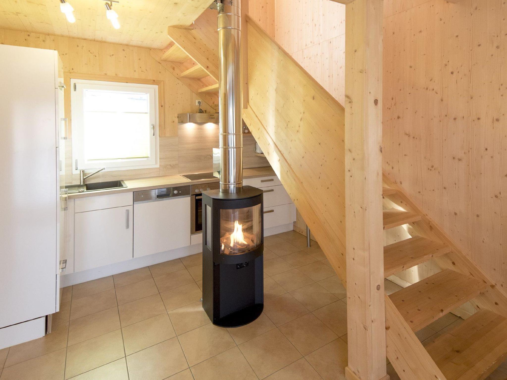 "Stolz 2a", 4-room chalet 70 m2. Spacious, modern and tasteful furnishings: living/dining room with Scandinavian wood stove, dining table and satellite TV (flat screen). 2 double bedrooms. 1 room with 1 x 2 bunk beds. Open kitchen (oven, dishwasher, 4 ceramic glass hob hotplates, microwave, electric coffee machine). Shower/WC, 2 sep. WC's. Terrace. Terrace furniture. Beautiful view of the countryside. Facilities: Internet (WiFi, free). Please note: non-smokers only. The property is one of a type of property or apartment. Different house furnishing possible. House has an outdoor bubble bath.