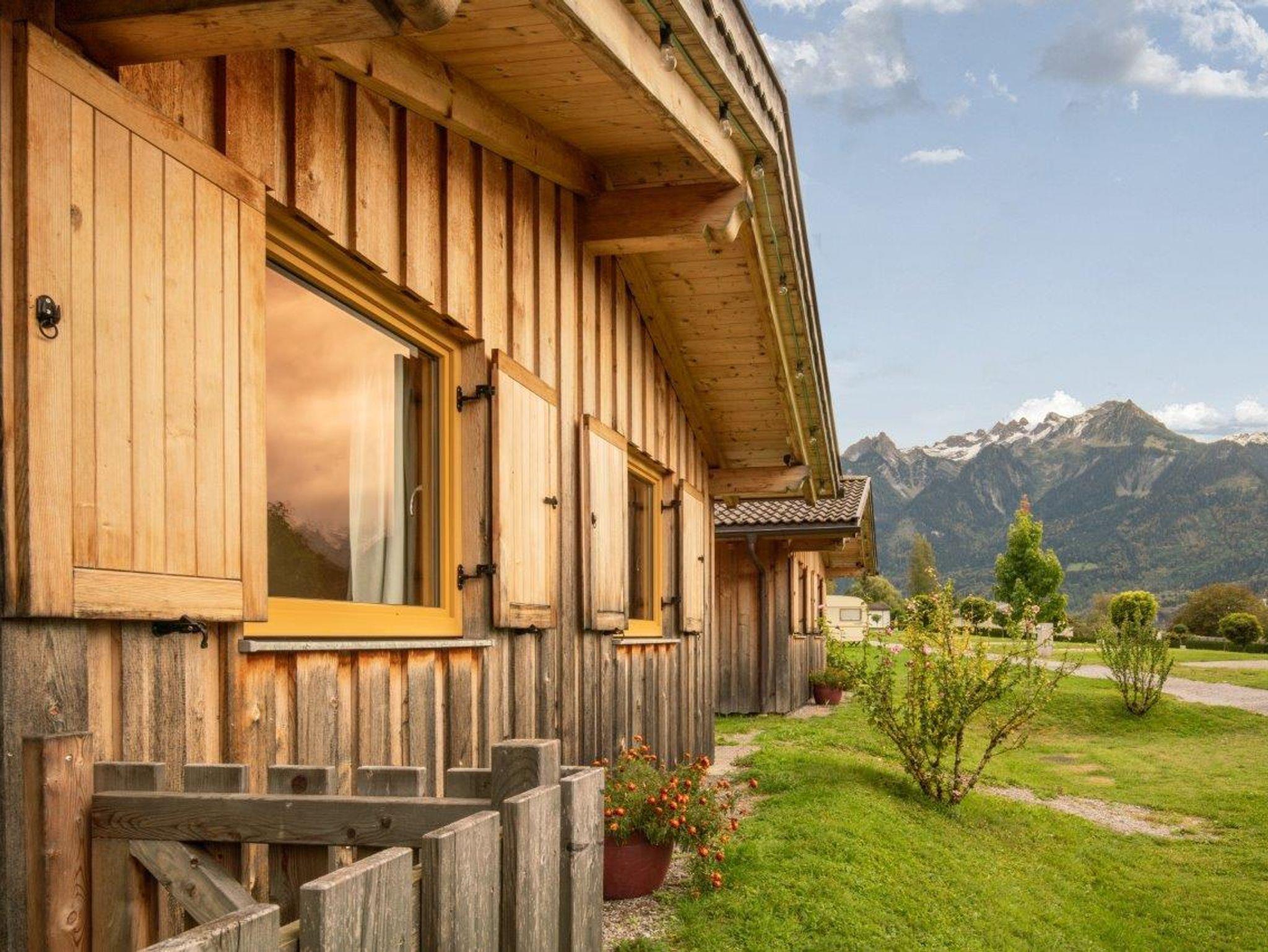 Unsere 2 Bungalows in natürlicher Holzbauweise mit herrlichem Blick auf die Berge