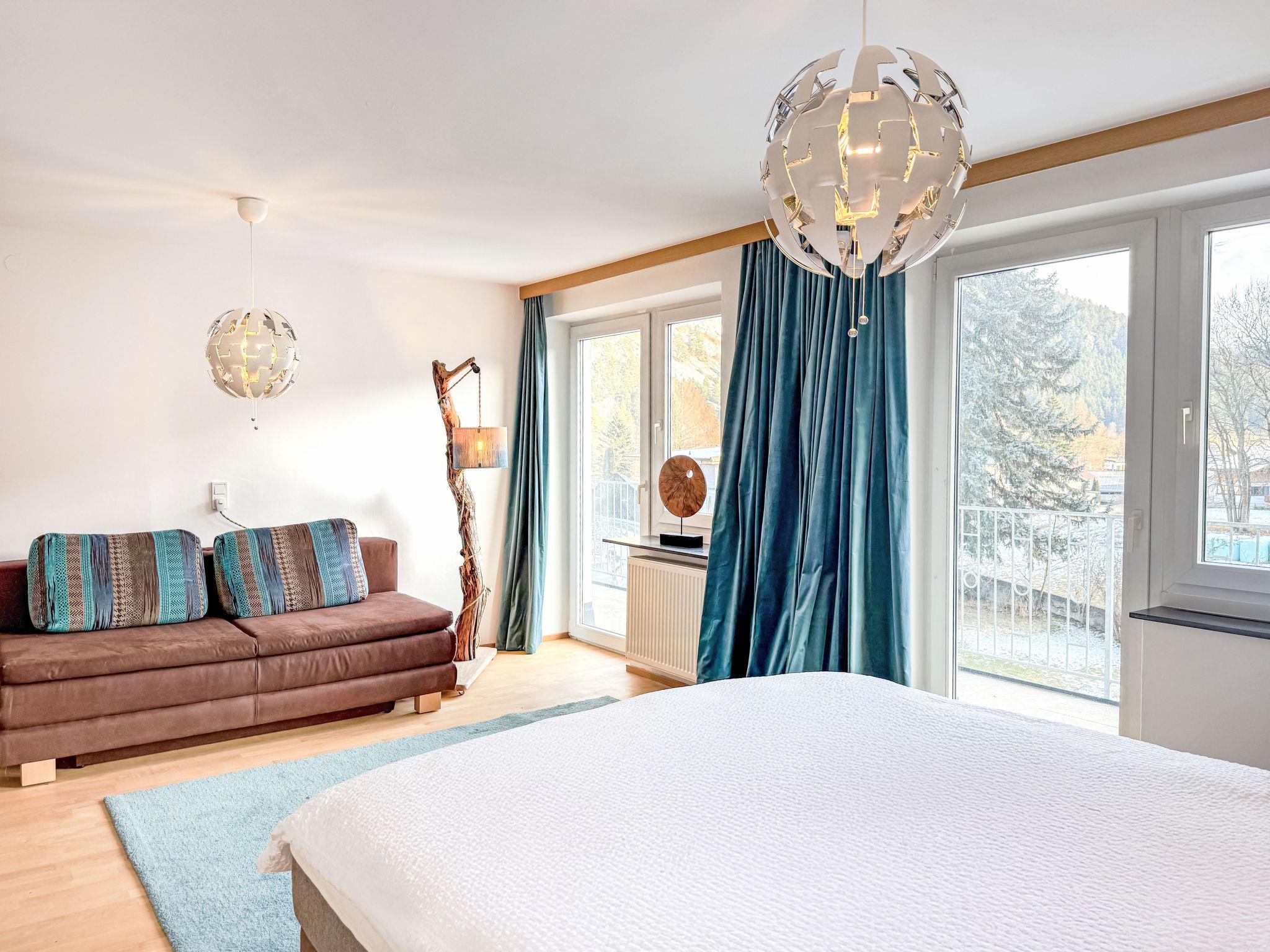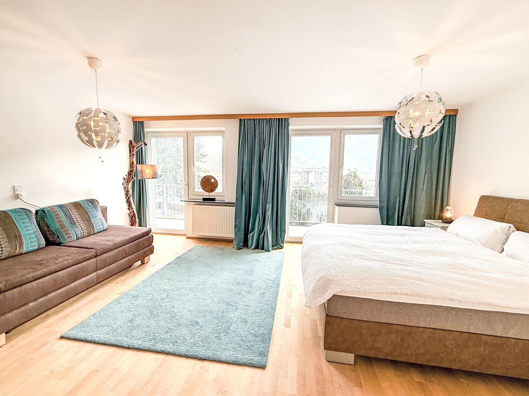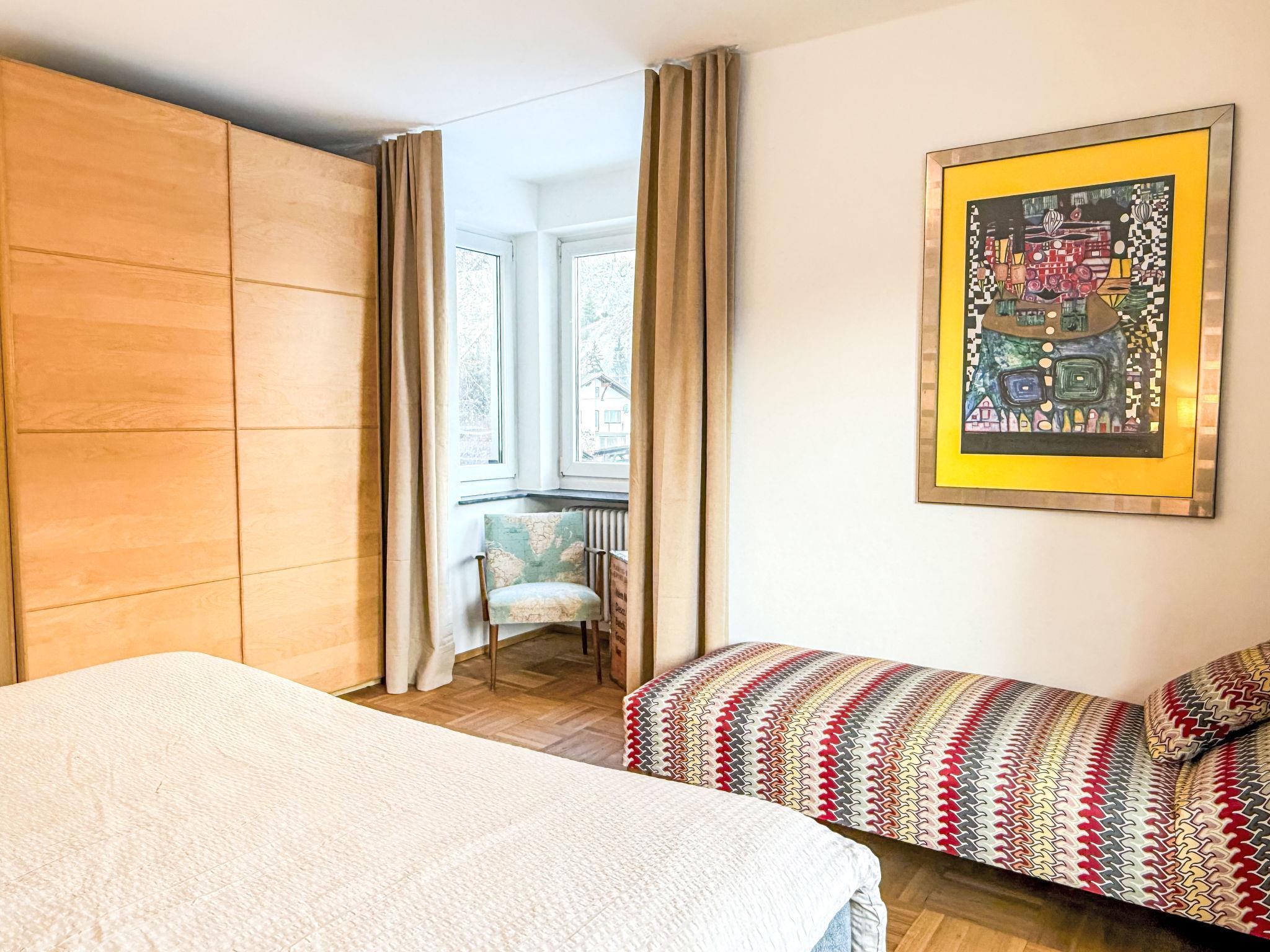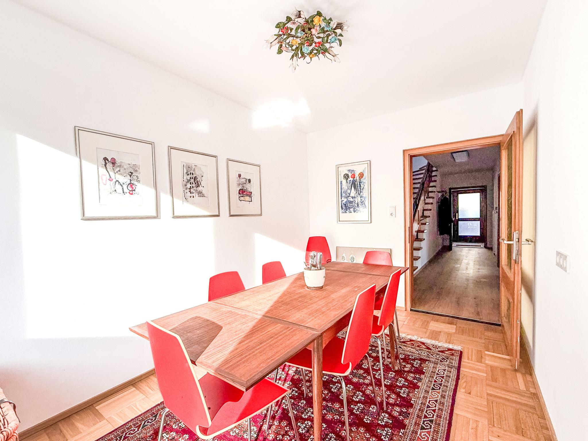 5-room semi-detached house 160 m2 on 2 levels, south-west facing position. Beautiful and cosy furnishings: entrance hall. Large living room with TV (flat screen). Dining room. Exit to the terrace. Large kitchen (oven, dishwasher, 4 ceramic glass hob hotplates, toaster, kettle, microwave, freezer, electric coffee machine) with dining nook. Exit to the garden. Sep. WC. Upper floor: 1 double bedroom with hand-basin. 1 room with 1 sofabed, 1 double bed and hand-basin. 1 room with 1 double sofabed and 1 double bed. Exit to the balcony. Luggage room. Bath/shower, sep. WC. Heating. Wooden floors. Large balcony, south facing position, large terrace, west facing position. Terrace furniture, balcony furniture, deck chairs. Beautiful view of the mountains. Facilities: washing machine, dryer. Internet (WiFi, free). Parking at the house. Please note: non-smoking house. 2 pets/ dogs allowed.