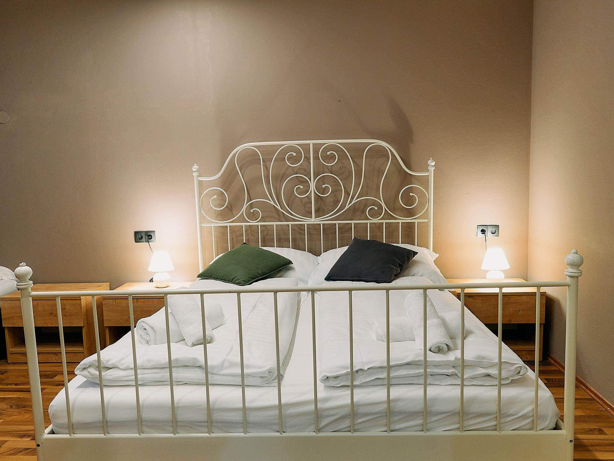 Dich erwartet ein Apartment mit 2 Schlafzimmern, Küche und Badezimmer. Beide Schlafzimmer haben jeweils ein Doppelbett und ein Einzelbett.