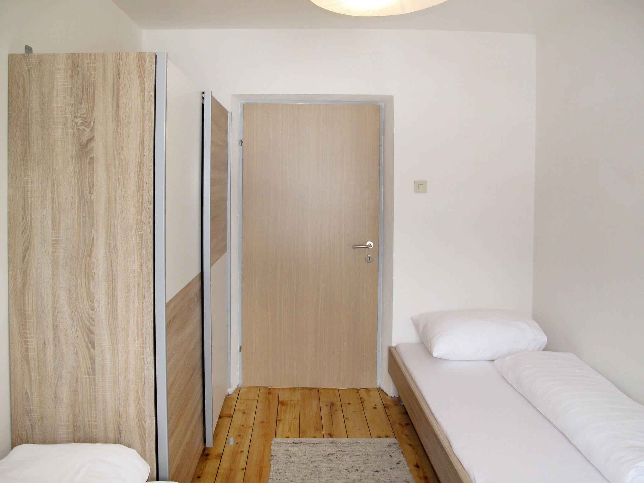"Altes Zollhaus", 5-room apartment 127 m2 on 1st floor, south-west facing position. Bright, renovated, beautiful and cosy furnishings: living room with satellite TV. 2 double bedrooms, each room with 1 double bed. 1 room with 2 beds, kitchen corner and shower/WC. 1 room with 3 beds. Kitchen (oven, dishwasher, 4 ceramic glass hob hotplates, toaster, kettle, microwave, electric coffee machine) with dining table. Shower/WC, sep. WC. Oil heating. Wooden floors. Facilities: children's high chair, baby cot, hair dryer. Internet (WiFi, free).