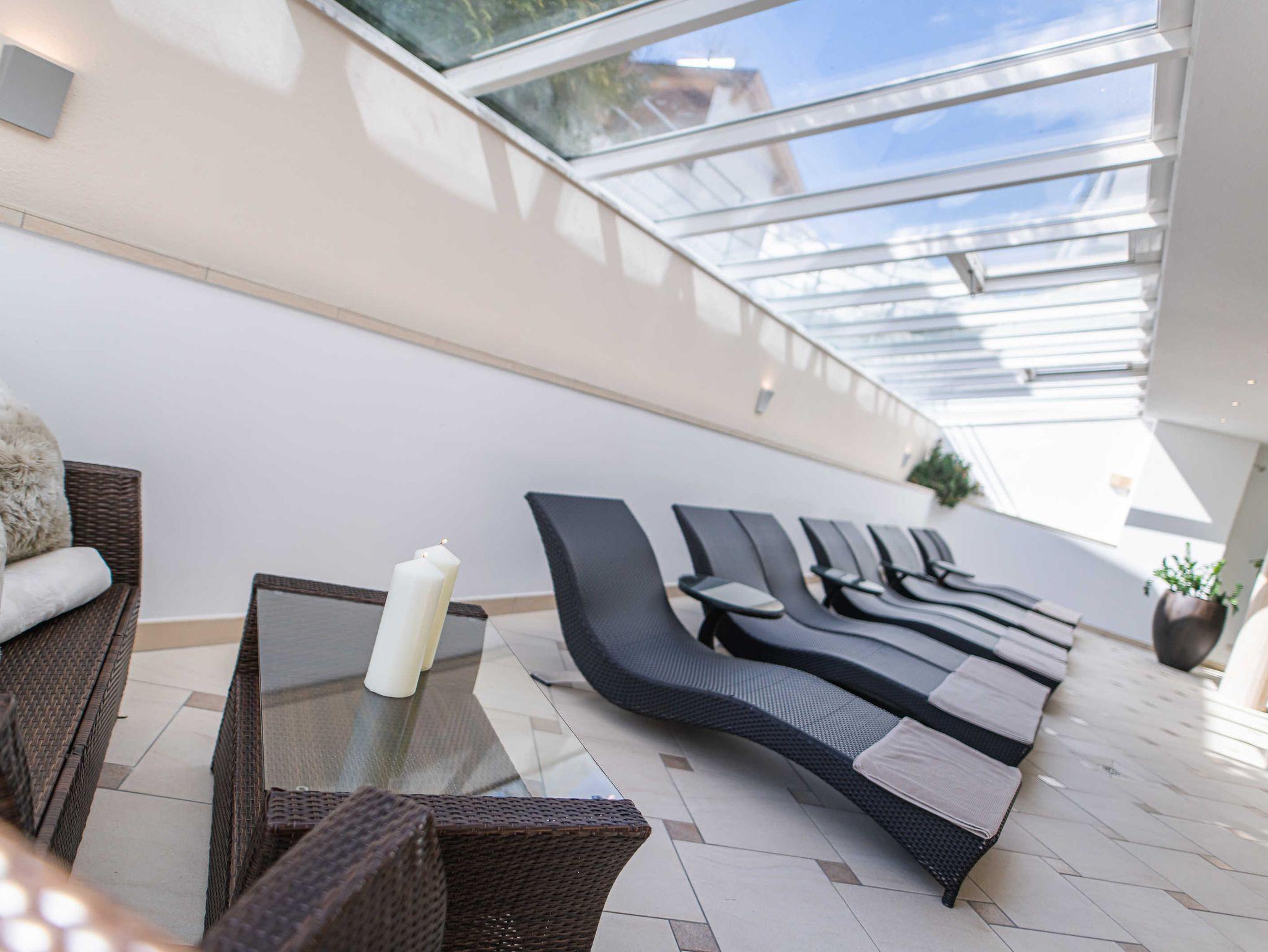• Wellnesstasche mit Bädemänteln, Saunatüchern und Badeschuhen für die Dauer Ihres Aufenthaltes