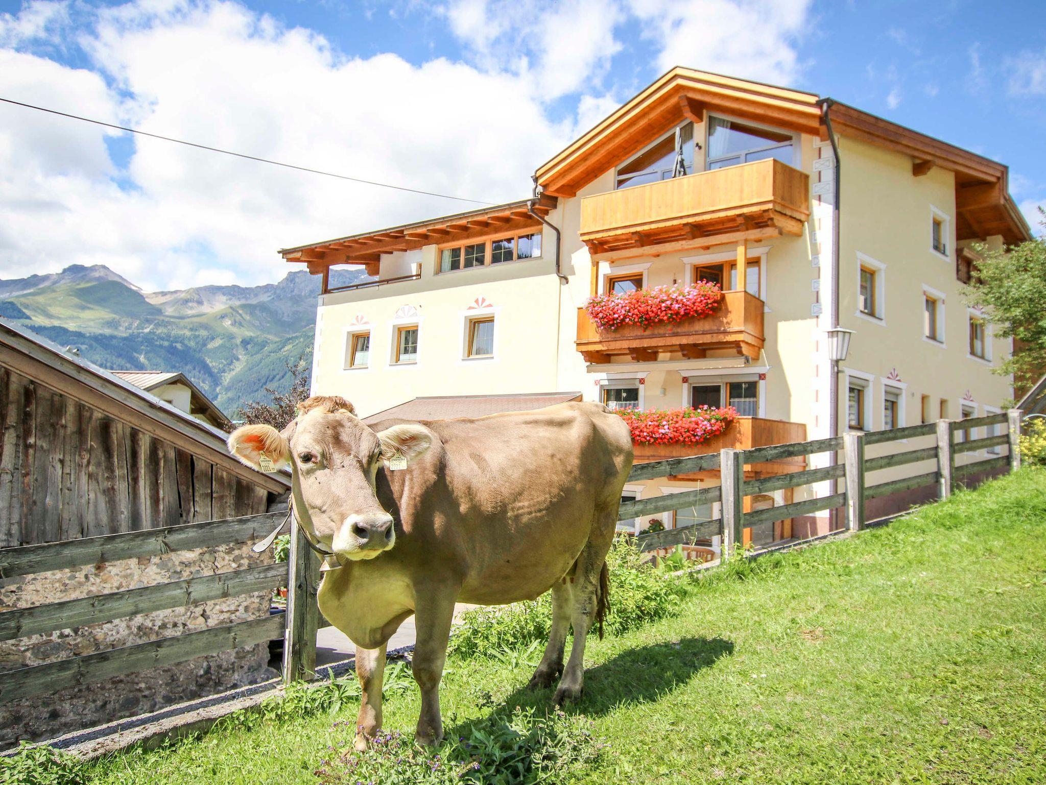 Unser Bauernhof liegt auf 1360 m Seehöhe, inmitten des schönen Bergdorfes Nauders