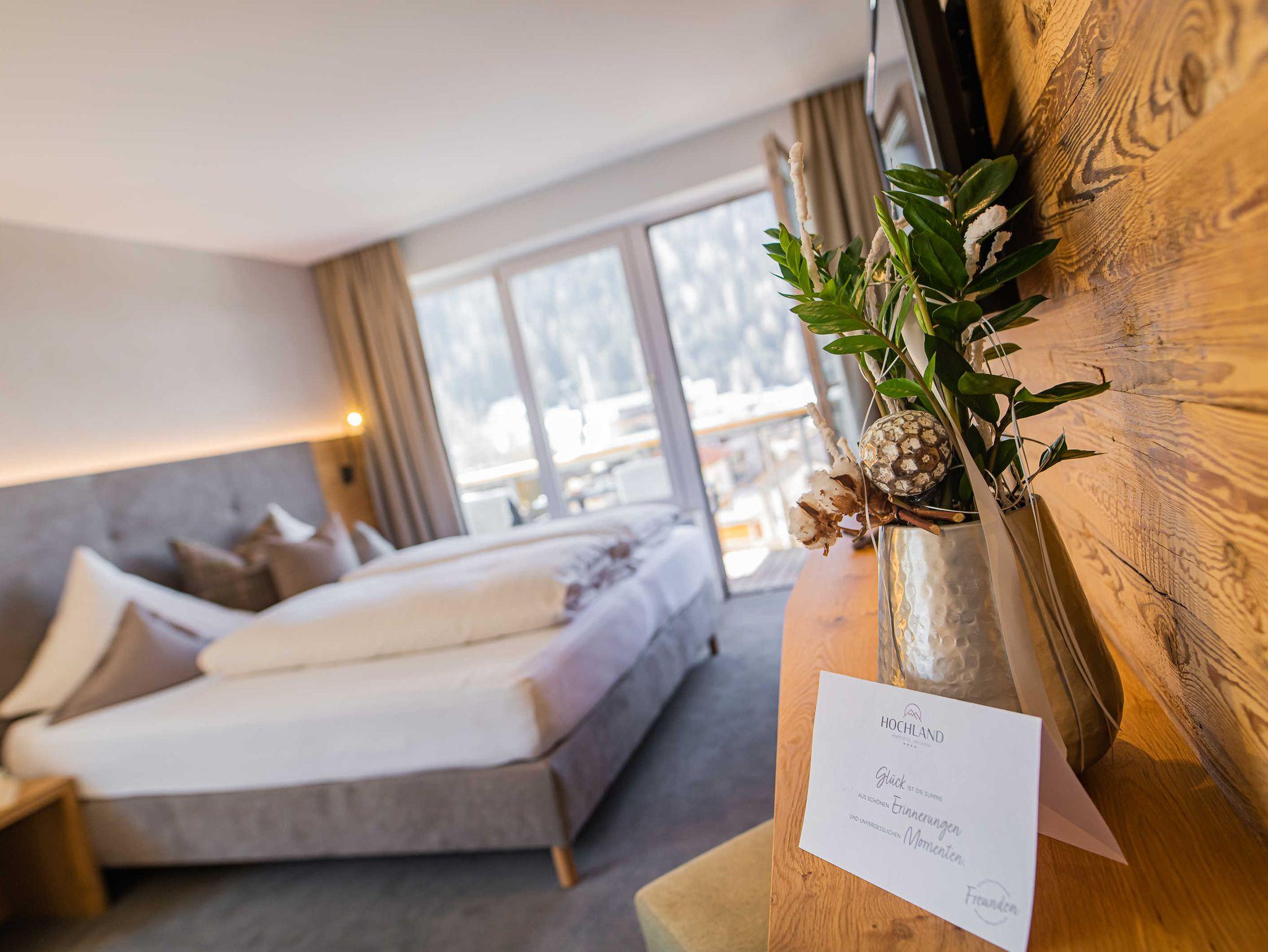 • Wellnesstasche mit Bädemänteln, Saunatüchern und Badeschuhen für die Dauer Ihres Aufenthaltes
