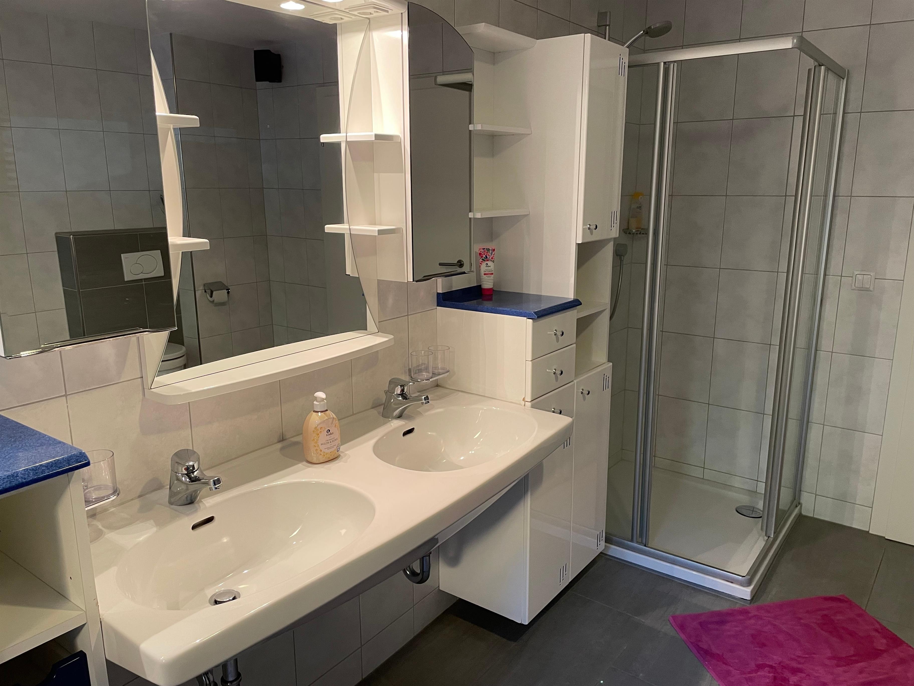 Ein Bad mit Badewanne und Dusche und für die Damen einen Schminktisch vervollständigen diese wunderschöne Wohnung.