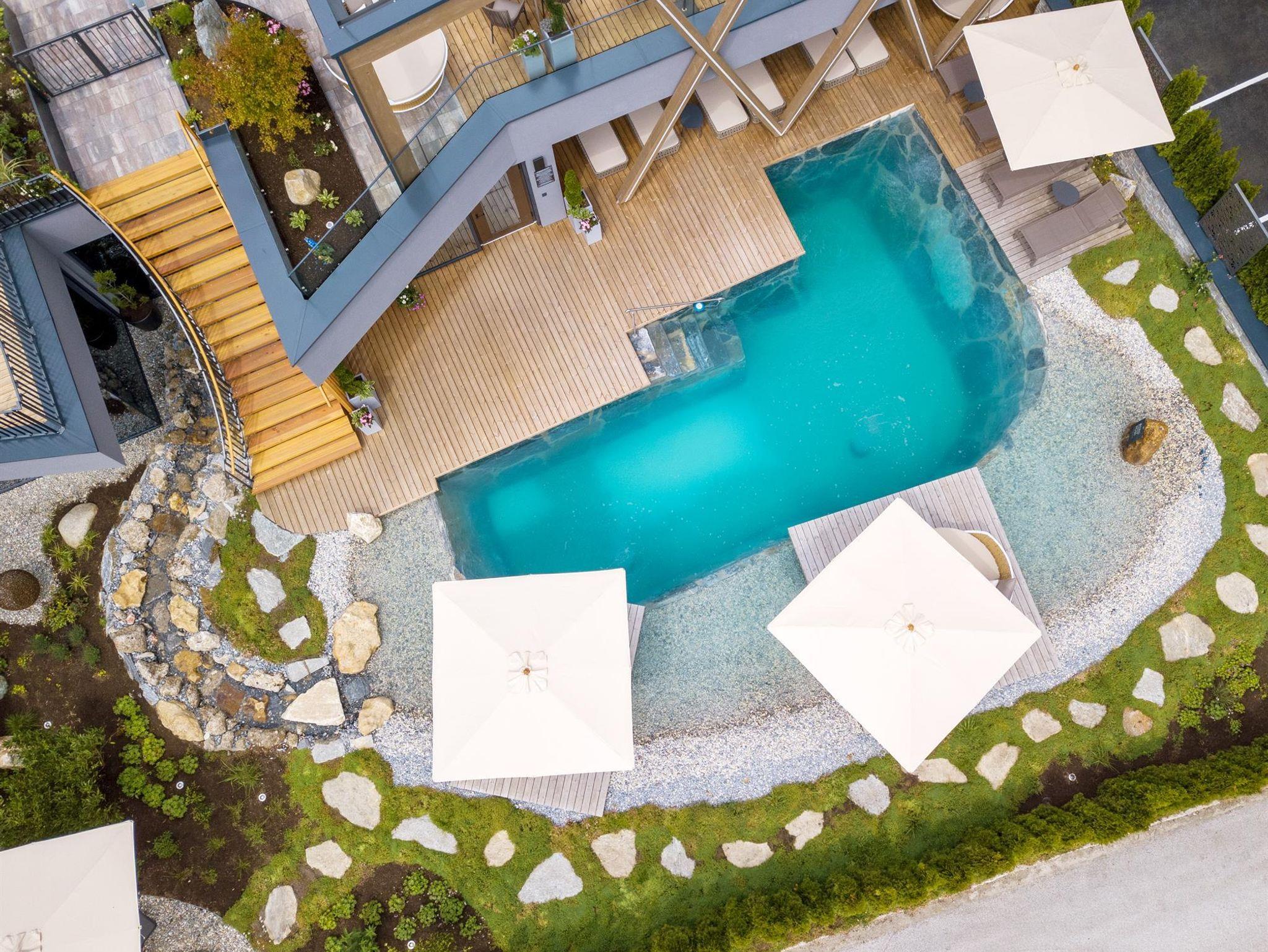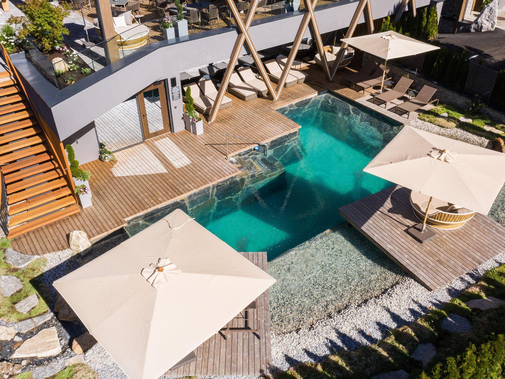 1200 m² Crystal-Spa mit Farblichthallenbad, Natur-Außenpool, 7 Saunen, Ruheraum Bergblick, Infratot-Wärmeliegen, Familien-Ruheraum mit Wasserbetten, Familien-Dress-on-Sauna, Massage,.. das Wohnzimmer im Wintergarten für gemütliche Stunden, Hotelbar mit Loungebereich, großer Speisesaal, Gaststube, Parkplätze mit Aufladestation für E-Autos (kostenpflichtig), Gemütliche Zimmer: Doppelzimmer, Wohlfühlzimmer, Studios und Suiten! Highlight: Das Baumhaus – dein Urlaubsnest im Forest 147m²