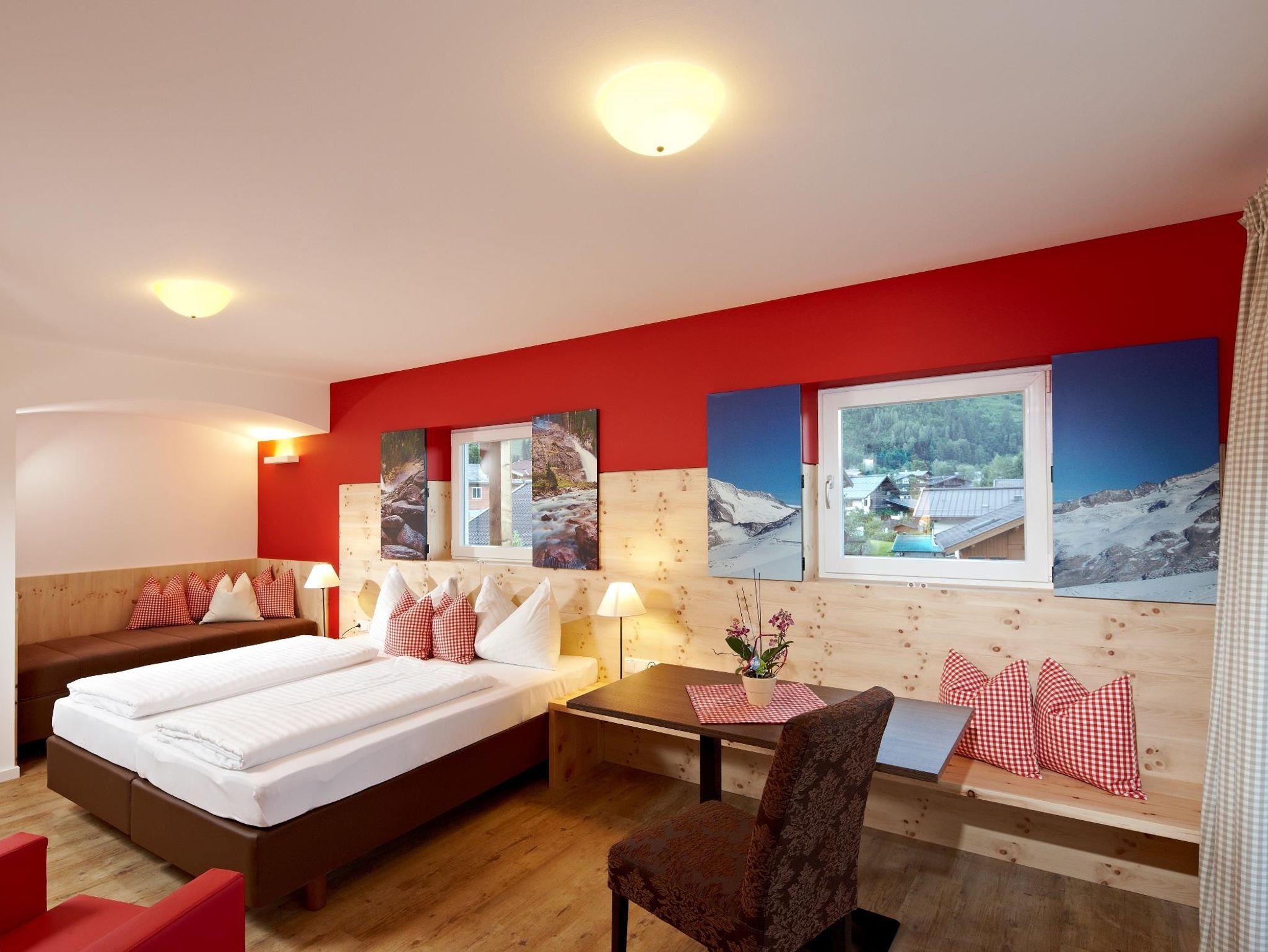 Großglockner-Studio: ca. 40 m², mit integriertem Wohnbereich, Dusche, WC großteils getrennt, Kabel-TV, Balkon oder Terrasse. Teilweise barrierefrei!