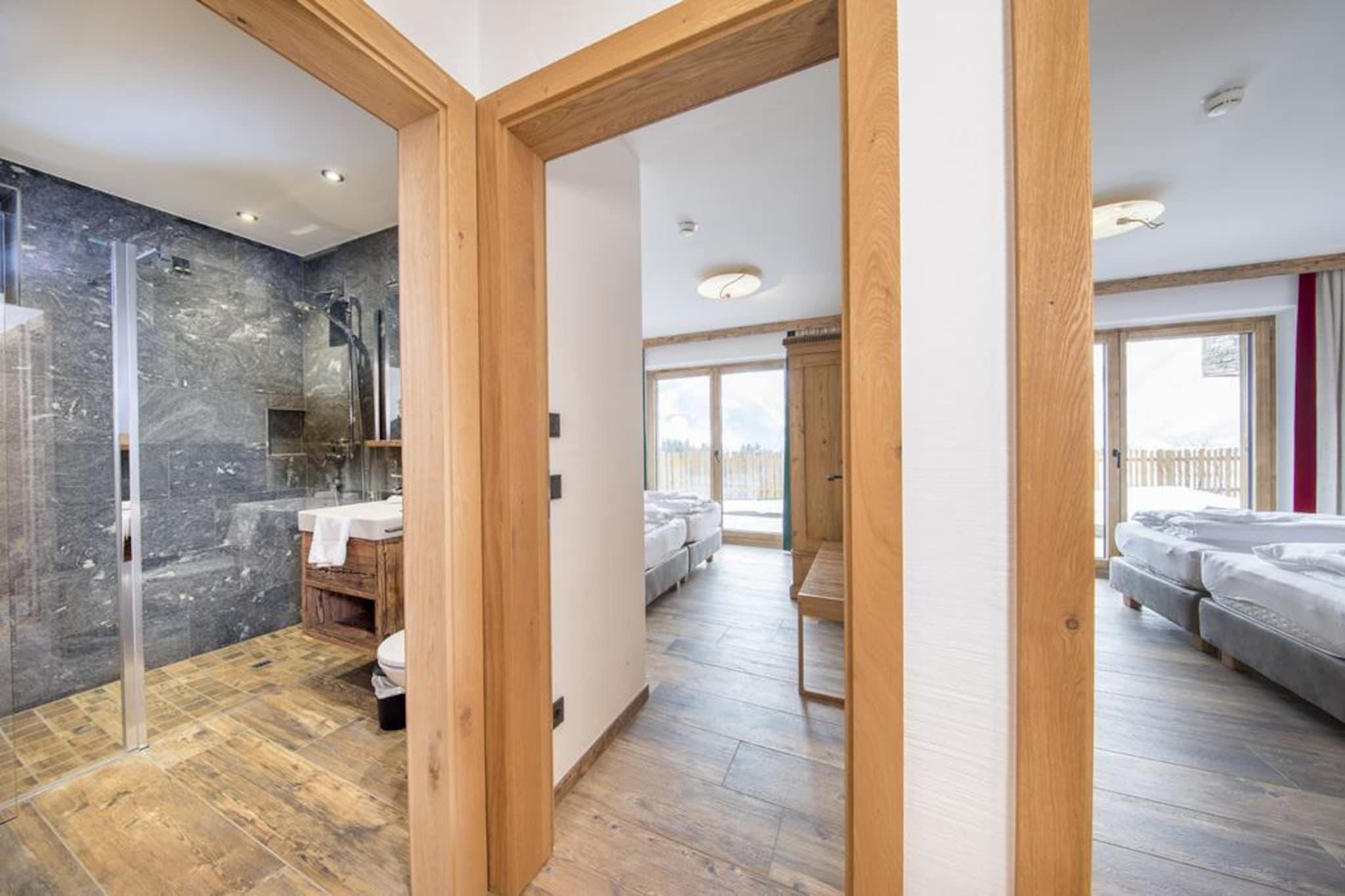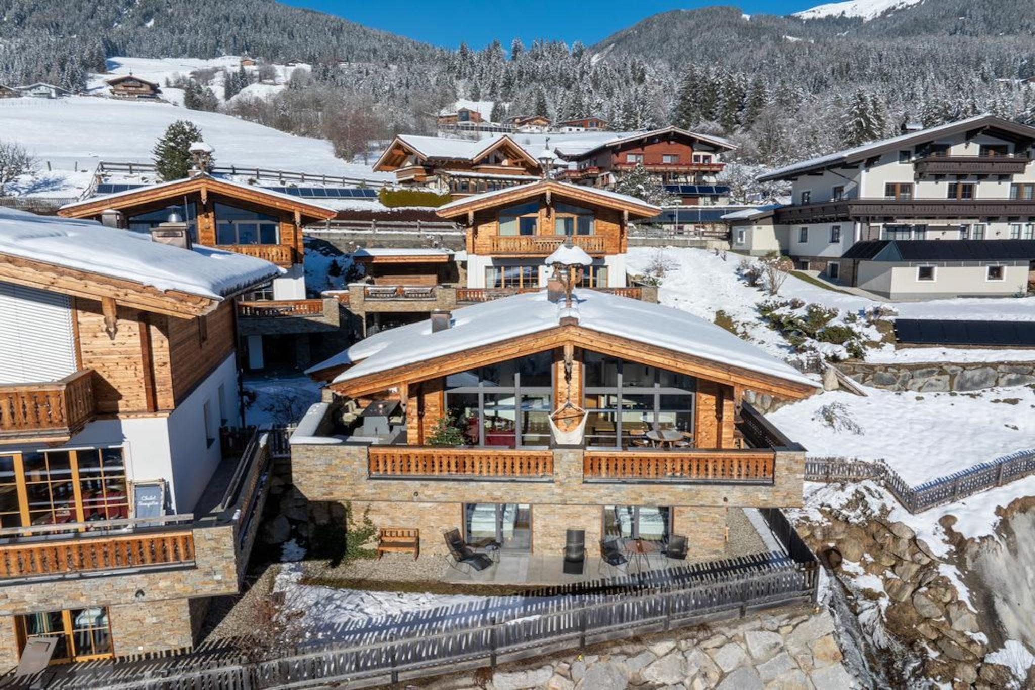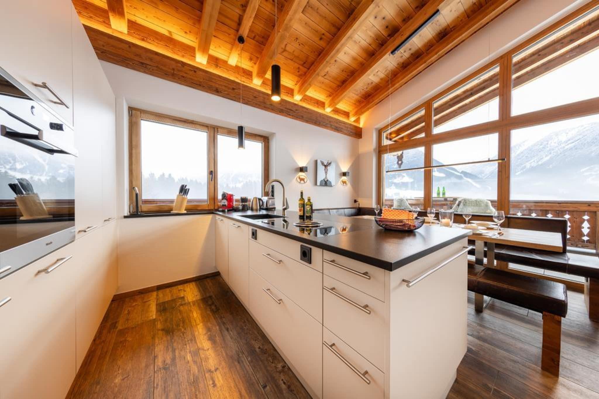 På en helt særlig beliggenhed, sydvest for det berømte Neukirchen am Großvenediger, omgivet af frisk bjergluft, grønne enge og smukke snehvide skråninger, ligger dette smukke, luksuriøse chalet bygget på den solrige skråning af Rossberg. Det smukke chalet er bygget med karakter. Den generøse brug af træ, karakteristiske detaljer, en perfekt finish kombineret med brugen af materialer af høj kvalitet gør huset yderst komfortabelt og luksuriøst. Du føler dig hjemme fra første øjeblik. Dit chalet, hvor I er de eneste gæster, har 2 etager. En af disse etager er opholdsstuen, som tilbyder en fantastisk udsigt gennem de store vinduer. Udover en opholds- og spisestue med hyggelig brændeovn er der også et moderne, åbent køkken udstyret med alt moderne udstyr. Soveværelserne, som er fordelt på etagerne, er meget stemningsfulde og har møbler af høj kvalitet. Du får også din egen private sauna. Du kan parkere to biler på de delvist overdækkede parkeringspladser. Der er flere chaleter i umiddelbar nærhed, hvilket skaber en slags landsby. Der er en centralt beliggende skiudlejning og skiskole. Derudover er der en "Imbiss" med en lille menu til en snack eller en drink. Kan du lide frisk brød hver dag? Intet problem, du kan bestille dette i receptionen. Skiliften med øvelsesbakke ligger i gåafstand fra hytten, perfekt til familier med små børn eller begyndere. Øvede skiløbere kan bringes til liften i det smukke skiområde Wildkogel Arena med den gratis skibus. På grund af beliggenheden lige ved pisten kan du stå på ski tilbage til din hytte, hvis der er nok sne. Vil du have noget anderledes? Skiområderne Zillertal Arena eller Kitzbühel/Kirchberg ligger kun få minutter væk i bil. Om sommeren tilbyder de omkringliggende bjerge og de mange seværdigheder masser af muligheder for den aktive feriegæst eller for dem, der søger ro. I perioden maj til oktober modtager du som gæst Nationalpark Sommercard med gratis adgang til lifter, swimmingpools, aktiviteter, offentlig transport og meget mere. Absolut anbefalet! Et lager af brænde er inkluderet i prisen.