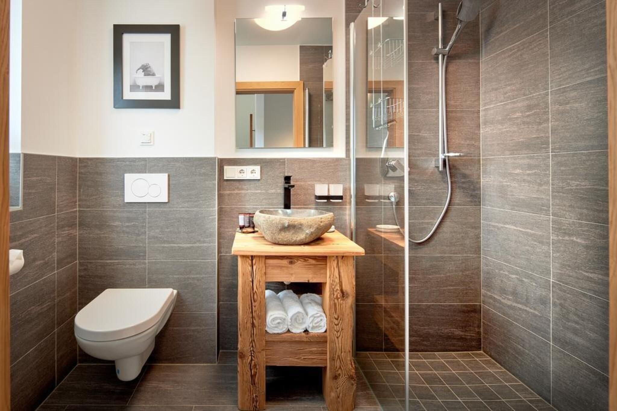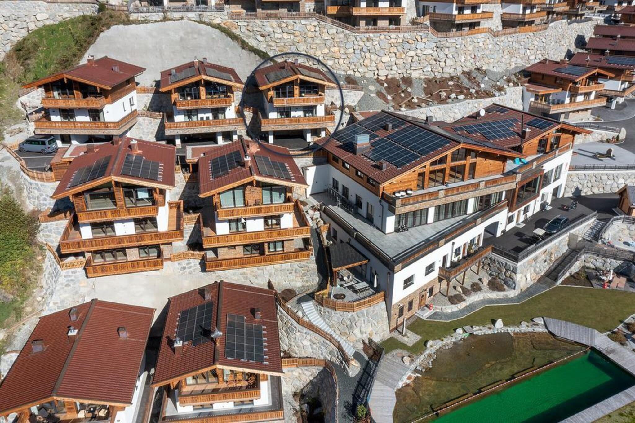 På en meget speciel beliggenhed, sydvest for den berømte Neukirchen am Großvenediger, omgivet af frisk bjergluft, grønne enge og smukke snedækkede hvide skråninger, er dette smukke luksuriøse chalet bygget på Rossbergs solrige skråning. Den smukke hytte er bygget med karakter. Den liberale brug af træ, særprægede detaljer, en perfekt finish kombineret med brugen af materialer af høj kvalitet gør huset yderst komfortabelt og luksuriøst. Du føler dig hjemme helt fra det første øjeblik. Din hytte, som du selv optager alene, har selvfølgelig mindst 2 etager, men nogle gange også 3. Et af disse gulve er opholdsområdet, som har en fantastisk udsigt gennem den enorme vinduer. Udover et opholds- og spiseplads med hyggelig brændeovn er der også et moderne åbent køkken udstyret med alt moderne udstyr. Soveværelserne, der er fordelt over gulvene, er meget atmosfæriske og har møbler af høj kvalitet. Der er også en privat sauna. Du kan parkere din bil på de delvist overdækkede parkeringspladser, som ledig. Der er flere hytter i umiddelbar nærhed, der skaber en slags landsby. Der er en centralt beliggende ski udlejning og skiskole. Derudover er der en "Imbiss" med en lille menu til en snack eller en drink. Kan du lide frisk brød hver dag? Intet problem, du kan bestille disse i receptionen. Skibakken med træningsområde (fra 2019/2020 sæsonen) ligger inden for gåafstand af hytten, perfekt til familier med små børn eller begyndere. Avancerede skiløbere kan bringes til elevatoren af det smukke Wildkogel Arena skiområde med den gratis skibus. På grund af beliggenheden lige på skråningerne kan du stå tilbage til din hytte, når der er masser af sne. Vil du have noget andet? Skiområdet Zillertal Arena eller Kitzbühel / Kirchberg ligger kun få minutter væk i bil. Om sommeren tilbyder de omkringliggende bjerge og de mange seværdigheder at byde masser af muligheder for den aktive feriegæster eller for dem der søger ro. I