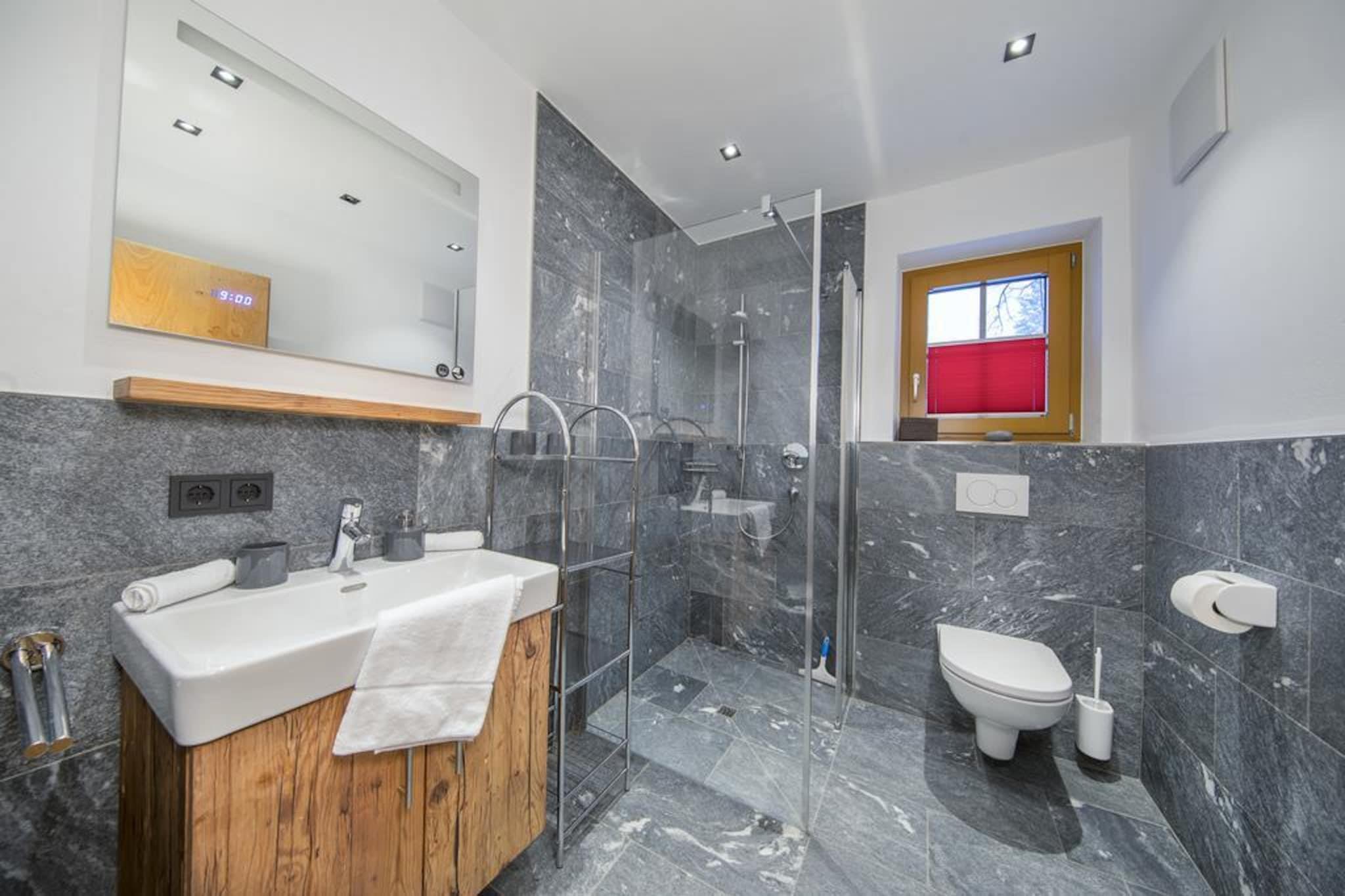 På en helt særlig beliggenhed, sydvest for det berømte Neukirchen am Großvenediger, omgivet af frisk bjergluft, grønne enge og smukke snehvide skråninger, ligger dette smukke, luksuriøse chalet bygget på den solrige skråning af Rossberg. Det smukke chalet er bygget med karakter. Den generøse brug af træ, karakteristiske detaljer, en perfekt finish kombineret med brugen af materialer af høj kvalitet gør huset yderst komfortabelt og luksuriøst. Du føler dig hjemme fra første øjeblik. Dit chalet, hvor I er de eneste gæster, har 3 etager. En af disse etager er opholdsstuen, som tilbyder en fantastisk udsigt gennem de store vinduer. Udover en opholds- og spisestue med hyggelig brændeovn er der også et moderne, åbent køkken udstyret med alt moderne udstyr. Soveværelserne, som er fordelt på etagerne, er meget stemningsfulde og har møbler af høj kvalitet. Du har også din egen private sauna. Du kan parkere din bil (eller to biler) på de delvist overdækkede parkeringspladser, afhængigt af tilgængelighed. Der er flere hytter i umiddelbar nærhed, hvilket skaber en slags landsby. Der er en centralt beliggende skiudlejning og skiskole. Derudover er der en "Imbiss" med en lille menu til en snack eller drikkevare. Kan du lide frisk brød hver dag? Intet problem, du kan bestille dette i receptionen. Skiliften med øvelsesbakke ligger i gåafstand fra hytten, perfekt til familier med små børn eller begyndere. Øvede skiløbere kan bringes til liften i det smukke skiområde Wildkogel Arena med den gratis skibus. På grund af beliggenheden lige ved pisterne kan du stå på ski tilbage til din hytte, når der er masser af sne. Vil du have noget anderledes? Skiområderne Zillertal Arena eller Kitzbühel / Kirchberg ligger begge kun få minutter i bil. Om sommeren tilbyder de omkringliggende bjerge og mange attraktioner i umiddelbar nærhed masser af muligheder for den aktive feriegæst eller dem, der søger fred og ro. I perioden fra maj til oktober modtager du som gæst Nationalpark Sommercard med gratis adgang til lifter, swimmingpools, aktiviteter, offentlig transport og meget mere. Kan varmt anbefales! Et lager af brænde er inkluderet i prisen.