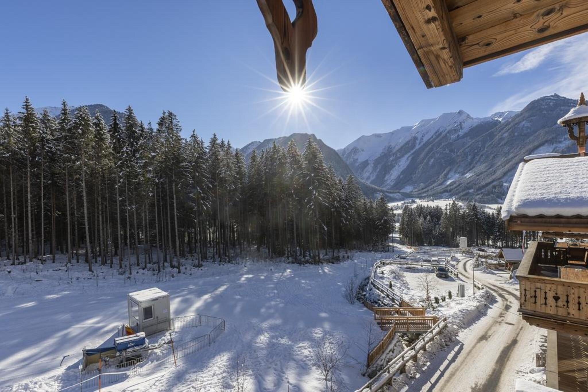 På en meget speciel beliggenhed, sydvest for den berømte Neukirchen am Großvenediger, omgivet af frisk bjergluft, grønne enge og smukke snedækkede hvide skråninger, er dette smukke luksuriøse chalet bygget på Rossbergs solrige skråning. Den smukke hytte er bygget med karakter. Den liberale brug af træ, særprægede detaljer, en perfekt finish kombineret med brugen af materialer af høj kvalitet gør huset yderst komfortabelt og luksuriøst. Du føler dig hjemme helt fra det første øjeblik. Din hytte, som du selv optager alene, har selvfølgelig mindst 2 etager, men nogle gange også 3. Et af disse gulve er opholdsområdet, som har en fantastisk udsigt gennem den enorme vinduer. Udover et opholds- og spiseplads med hyggelig brændeovn er der også et moderne åbent køkken udstyret med alt moderne udstyr. Soveværelserne, der er fordelt over gulvene, er meget atmosfæriske og har møbler af høj kvalitet. Der er også en privat sauna. Du kan parkere din bil på de delvist overdækkede parkeringspladser, som ledig. Der er flere hytter i umiddelbar nærhed, der skaber en slags landsby. Der er en centralt beliggende ski udlejning og skiskole. Derudover er der en "Imbiss" med en lille menu til en snack eller en drink. Kan du lide frisk brød hver dag? Intet problem, du kan bestille disse i receptionen. Skibakken med træningsområde (fra 2019/2020 sæsonen) ligger inden for gåafstand af hytten, perfekt til familier med små børn eller begyndere. Avancerede skiløbere kan bringes til elevatoren af det smukke Wildkogel Arena skiområde med den gratis skibus. På grund af beliggenheden lige på skråningerne kan du stå tilbage til din hytte, når der er masser af sne. Vil du have noget andet? Skiområdet Zillertal Arena eller Kitzbühel / Kirchberg ligger kun få minutter væk i bil. Om sommeren tilbyder de omkringliggende bjerge og de mange seværdigheder at byde masser af muligheder for den aktive feriegæster eller for dem der søger ro. I