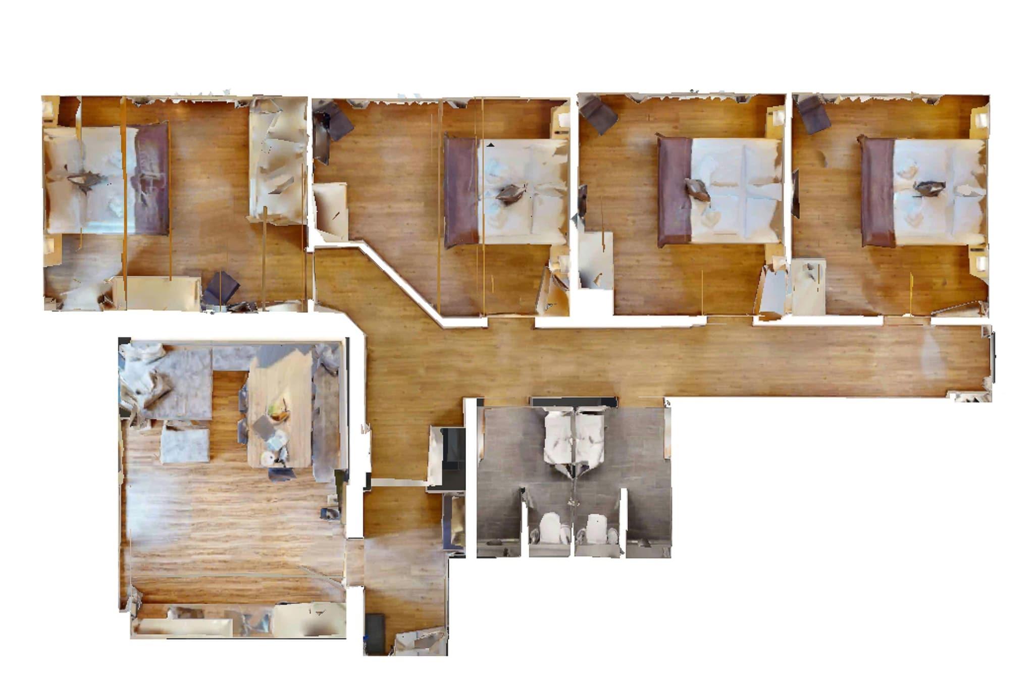 Køkken, stue / spisestue, soveværelse(dobbeltseng), soveværelse(dobbeltseng), soveværelse(dobbeltseng), soveværelse(dobbeltseng, køjeseng), badeværelse(bruser, toilet), badeværelse(bruser, toilet), Fjernsyn, kakkelovn, elkedel, kaffemaskine, ovn, mikrobølgeovn, køleskab, tørretumbler, vaskemaskine, balkon eller terrasse, baby crib(free)