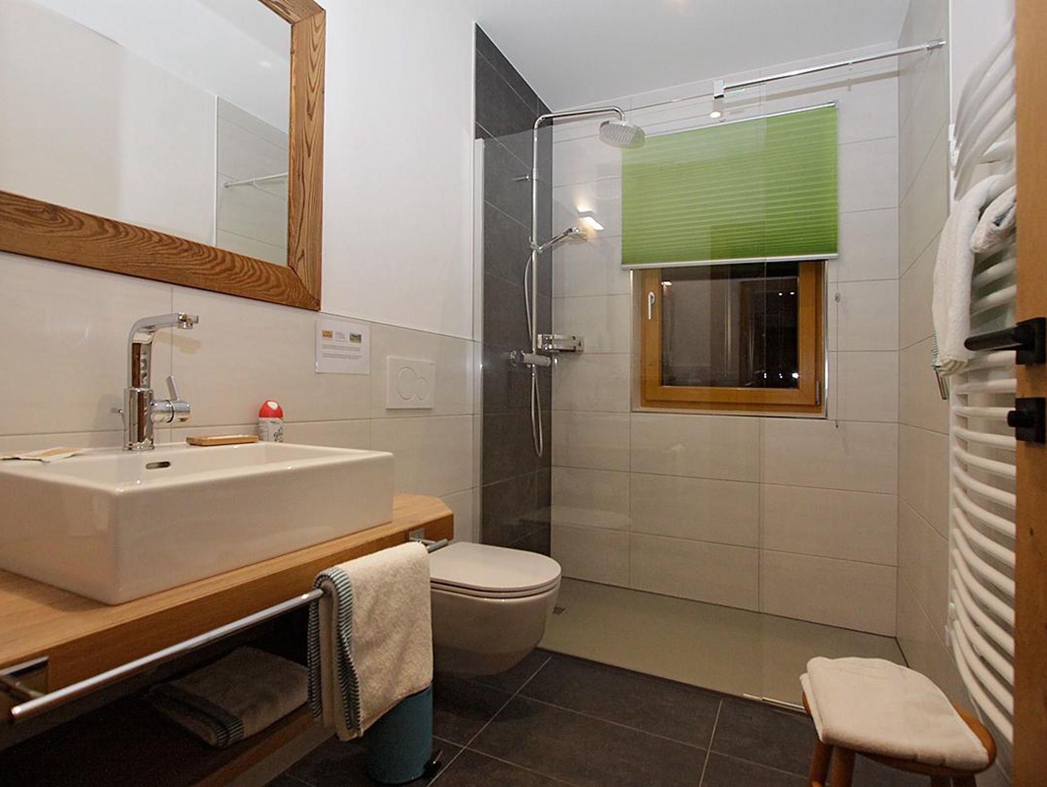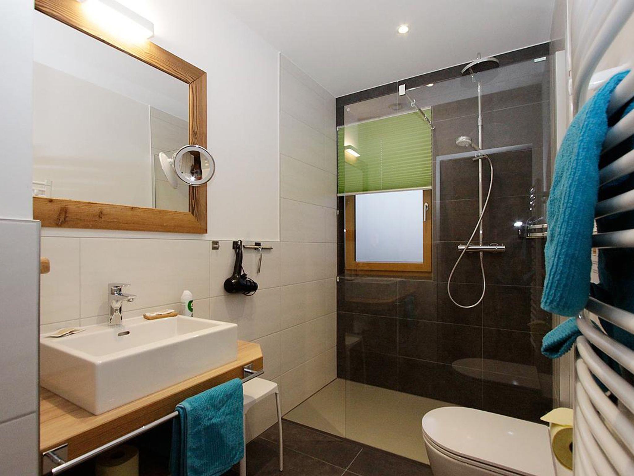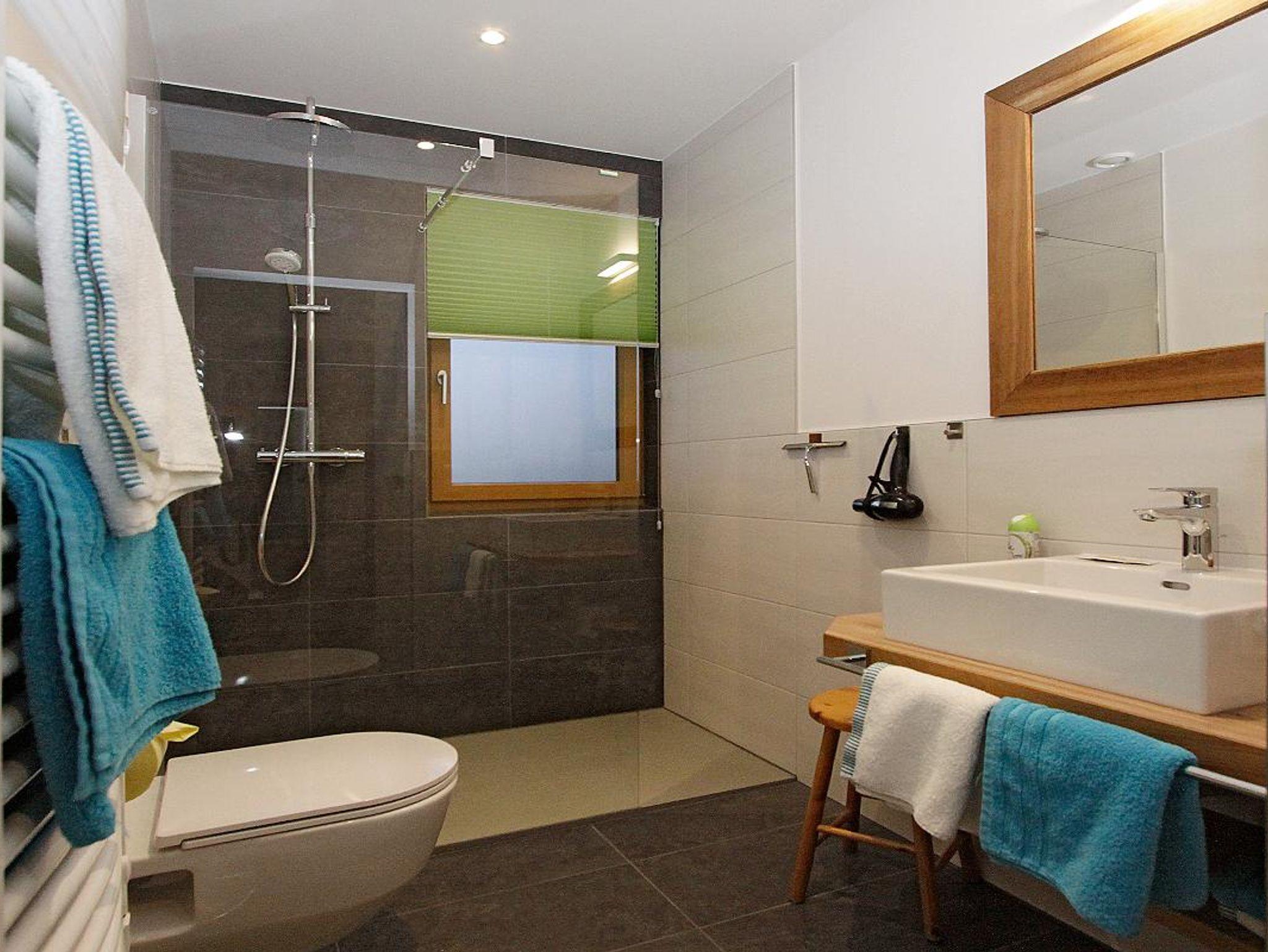 Helle neue Bäder mit Du / WC und Fenster.