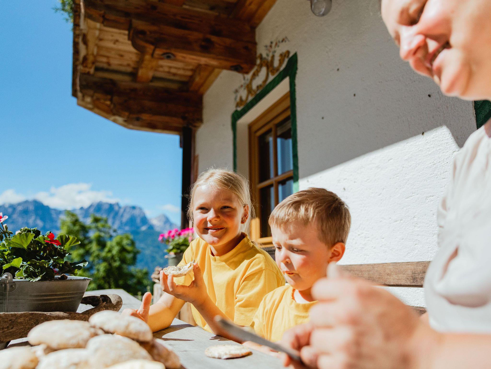 Freier Blick auf das Berg-Panorama der Lienzer Dolomiten und die Sonnenstadt Lienz. Ruhige und sonnige Lage abseits jeglicher Hektik. Frühstückskörberl mit Hofprodukten. Schau Bäuerin Margit und Bauer Leo bei der Stall- und Hofarbeit über die Schulter.