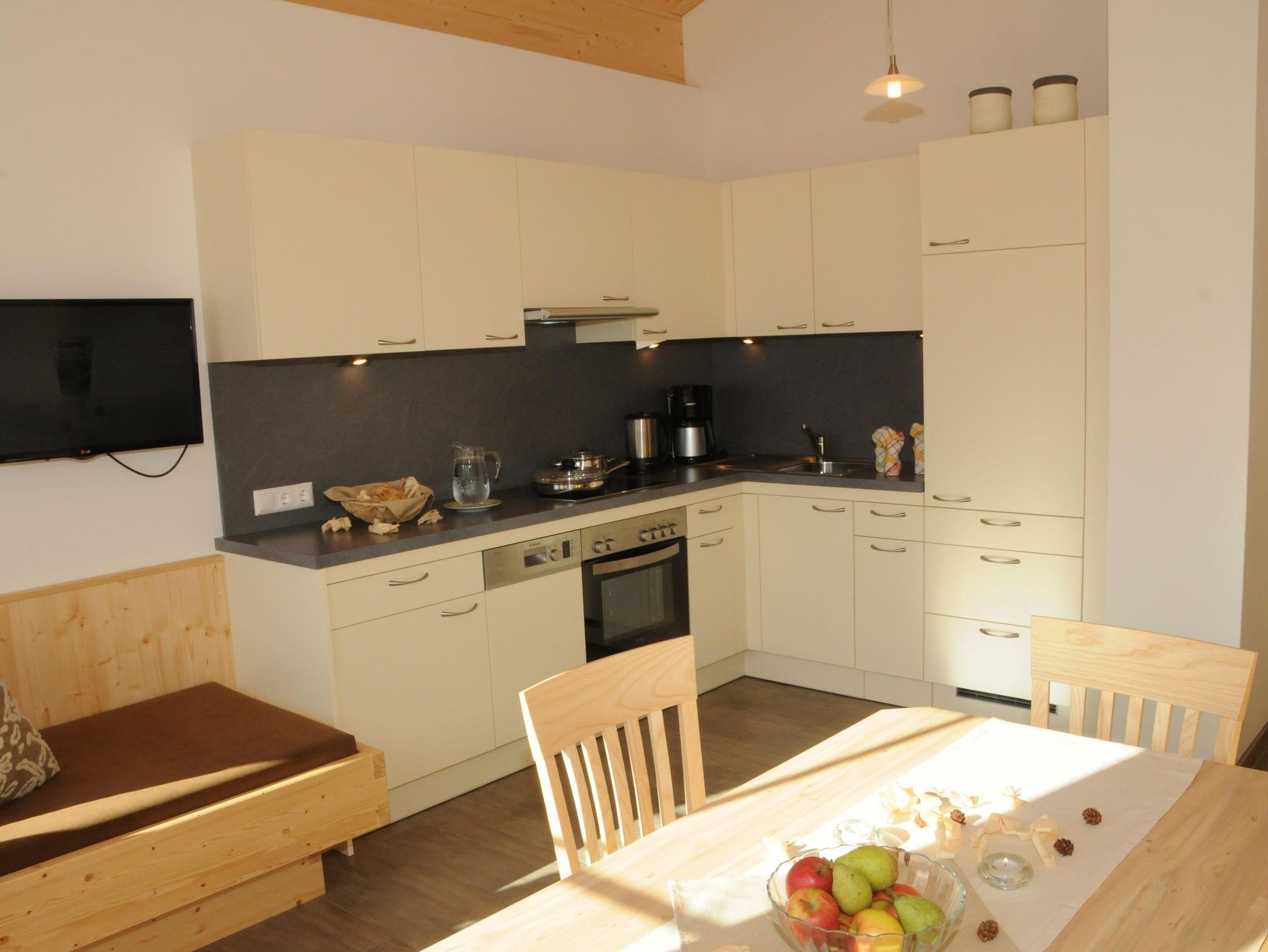 Neubau, Südlage, topausgestatte Wohnküche, Entspannungscouch, Balkon, 2 helle Schlafzimmer -Holzboden, Vollholzmöbel, allergikerfreundlich, Fußbodneheizung, Badezimmer, Dusche, Kosmetikspiegel, Haartrockner, WC extra, separater Eingang, W-LAN, SAT-TV