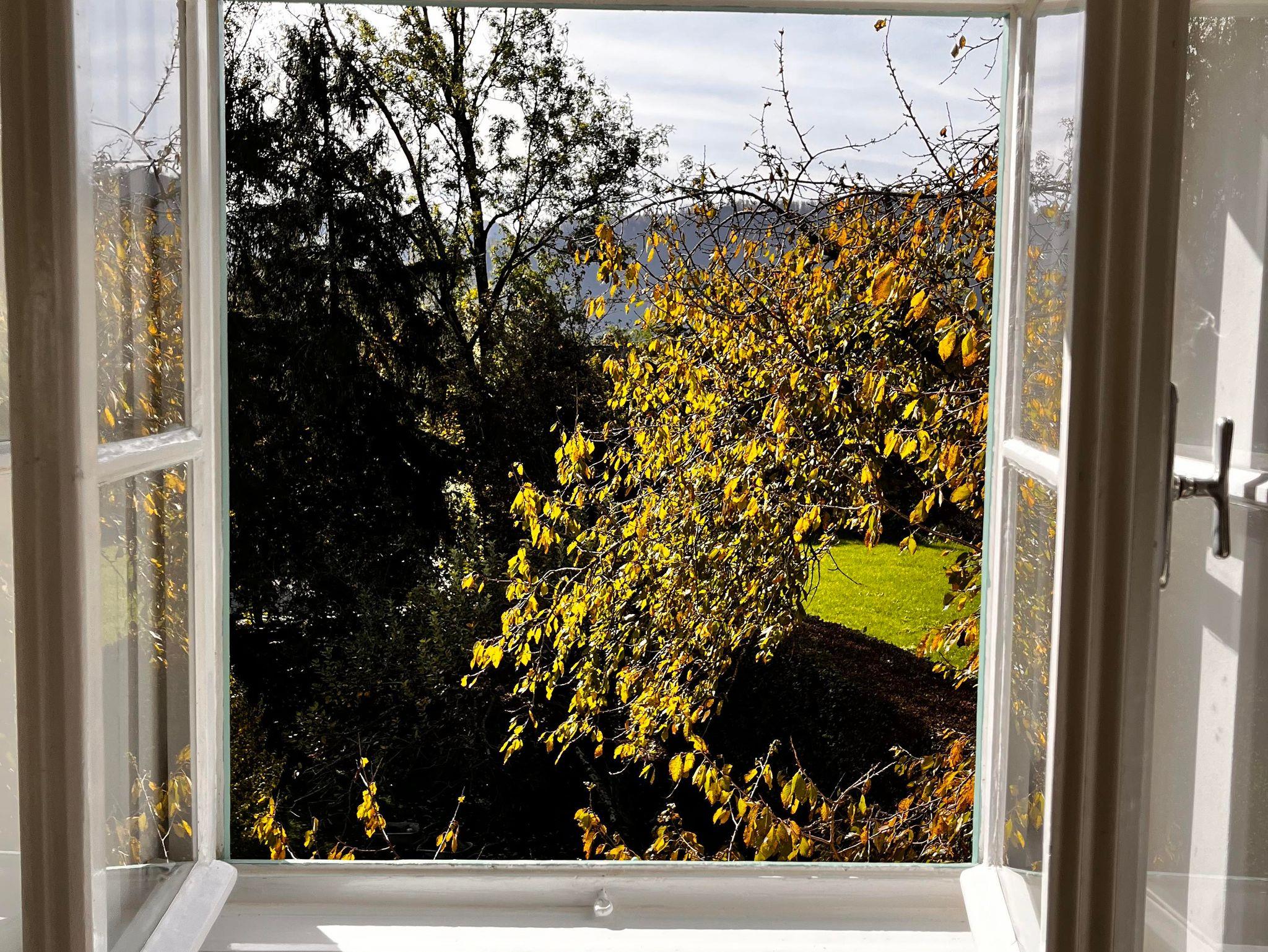 Alle Räume haben eine wunderbare Aussicht auf den großen Garten der Villa und auf die talbegrenzenden Alpen.