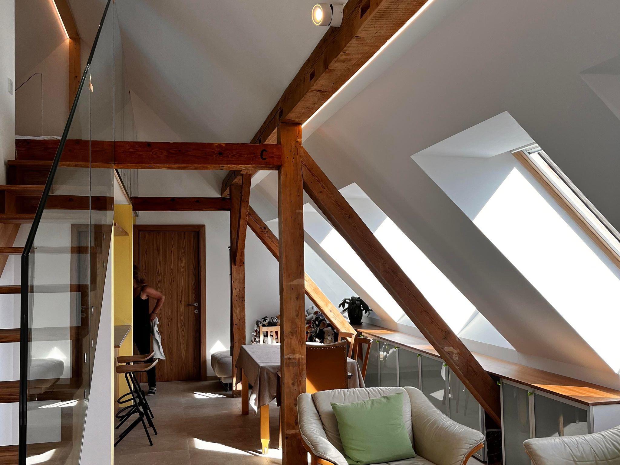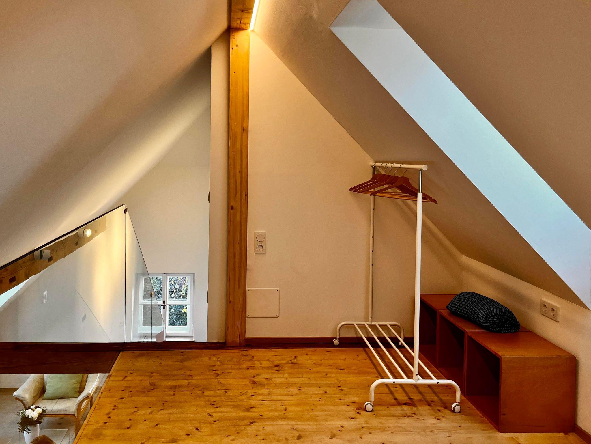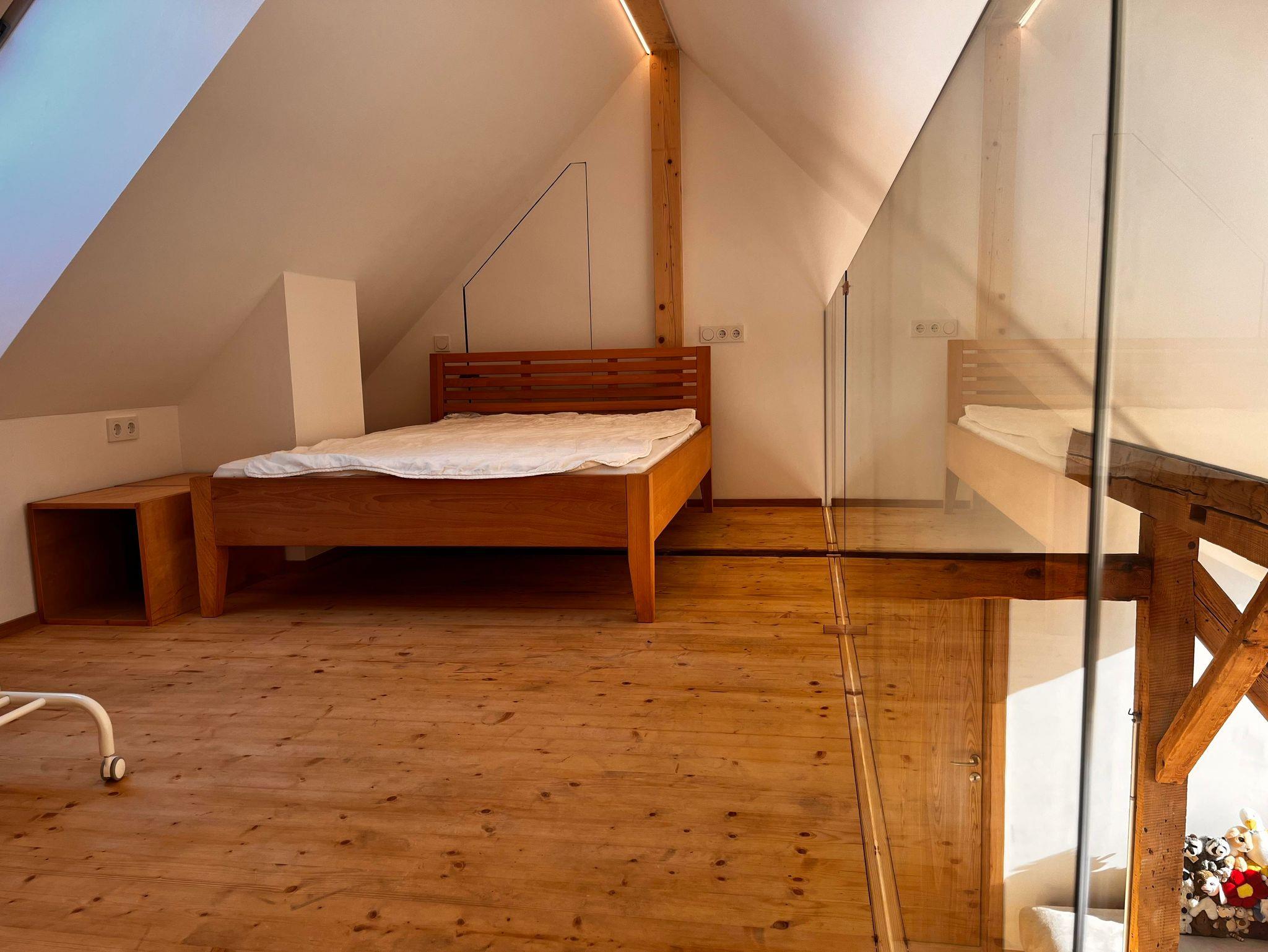 Im Dachgeschoß des Hauses wurde im Frühjahr 2024 ein doppelgeschossiges Loft unter das große Dach gebaut. Es besteht aus Garderobe, WC, einem Bad mit großer Glasdusche und