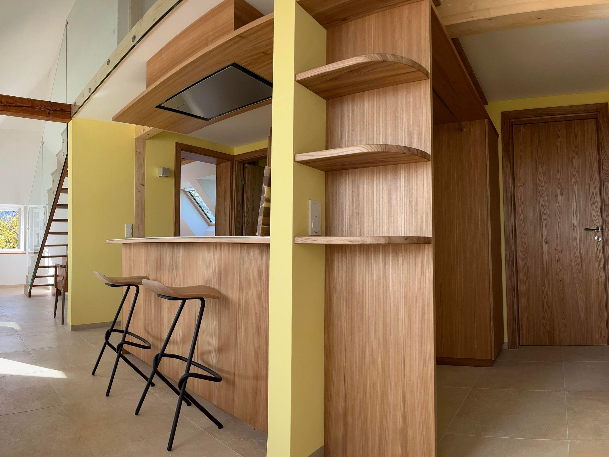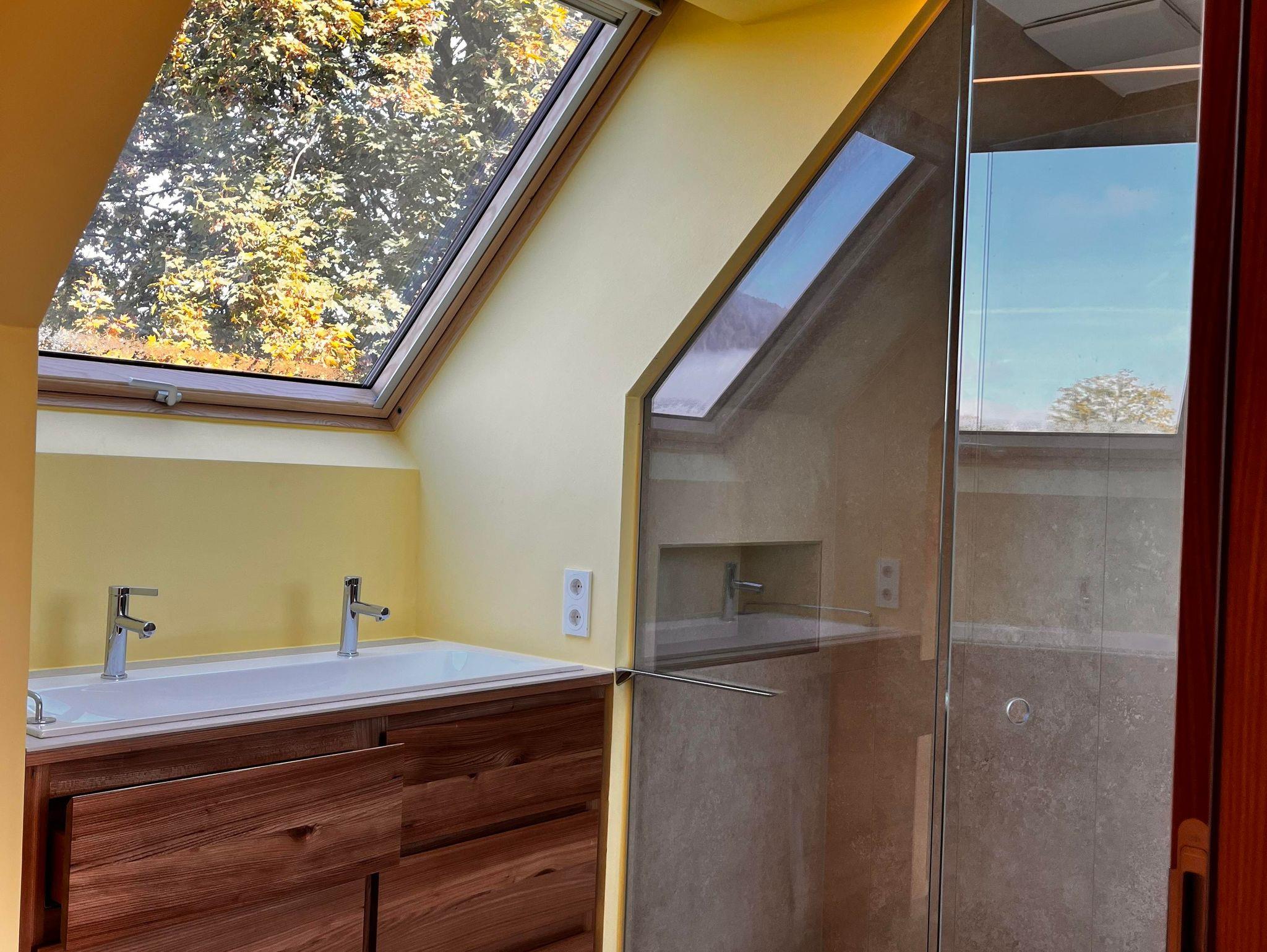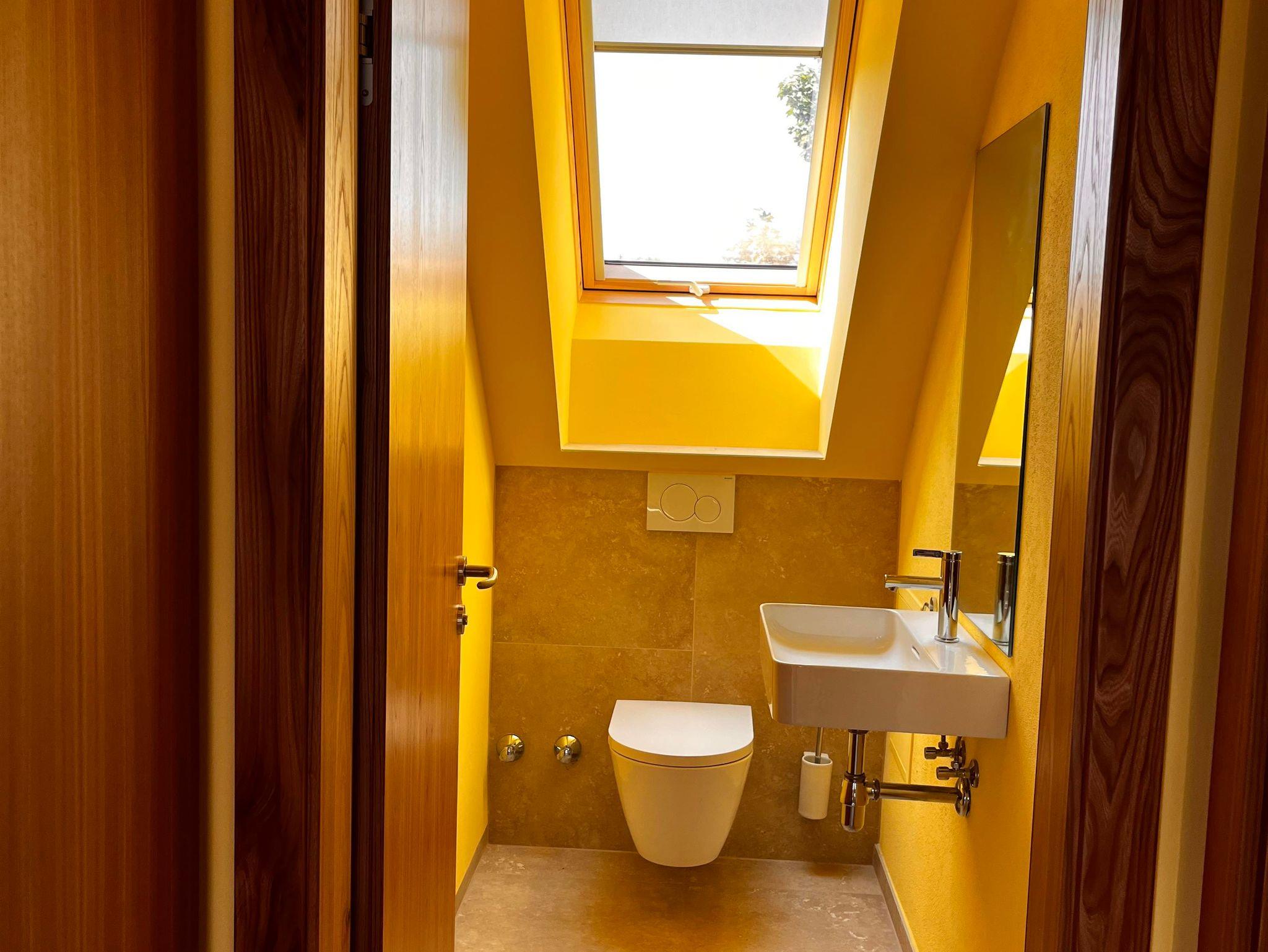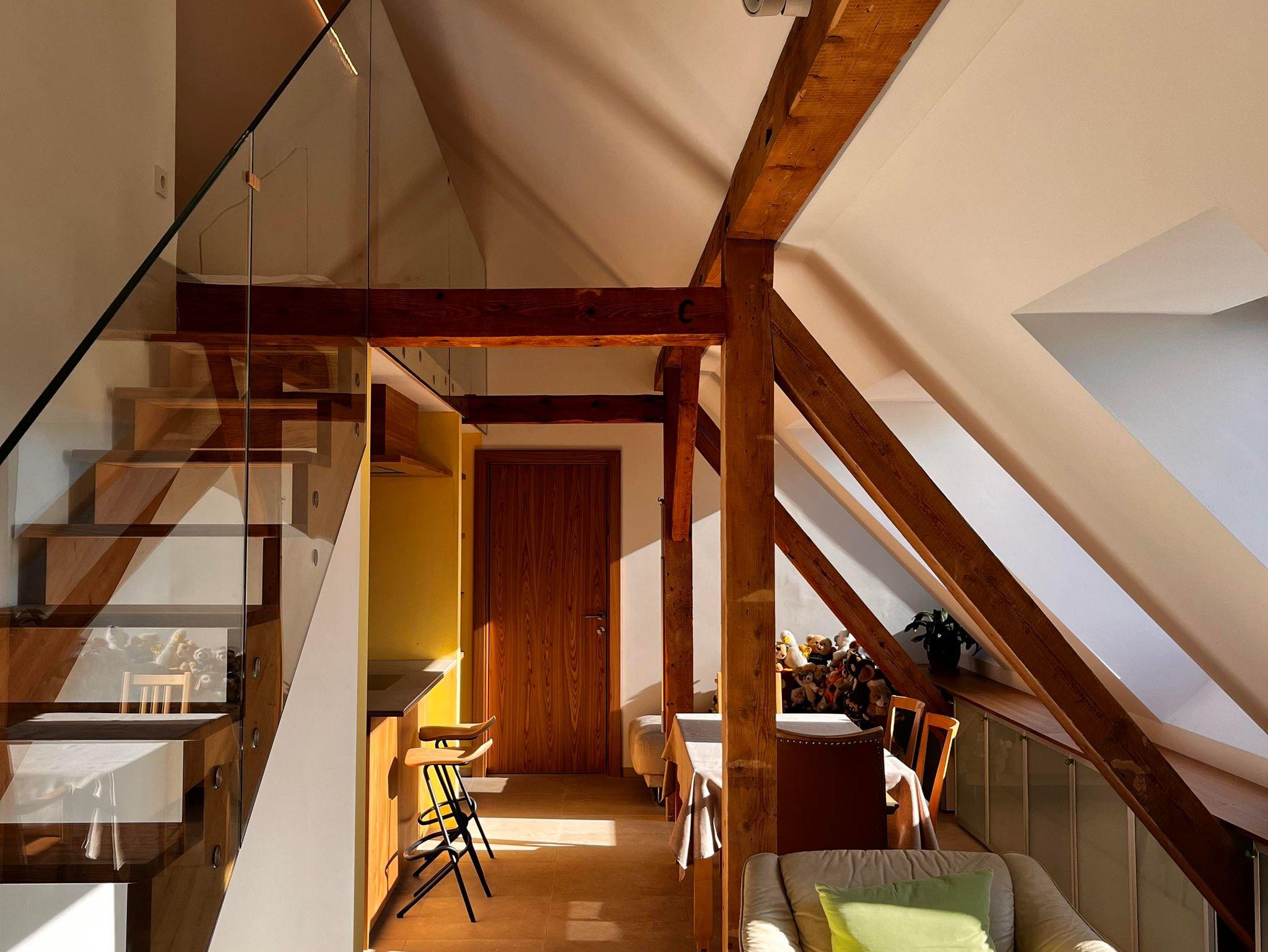 Im Dachgeschoß des Hauses wurde im Frühjahr 2024 ein doppelgeschossiges Loft unter das große Dach gebaut. Es besteht aus Garderobe, WC, einem Bad mit großer Glasdusche und