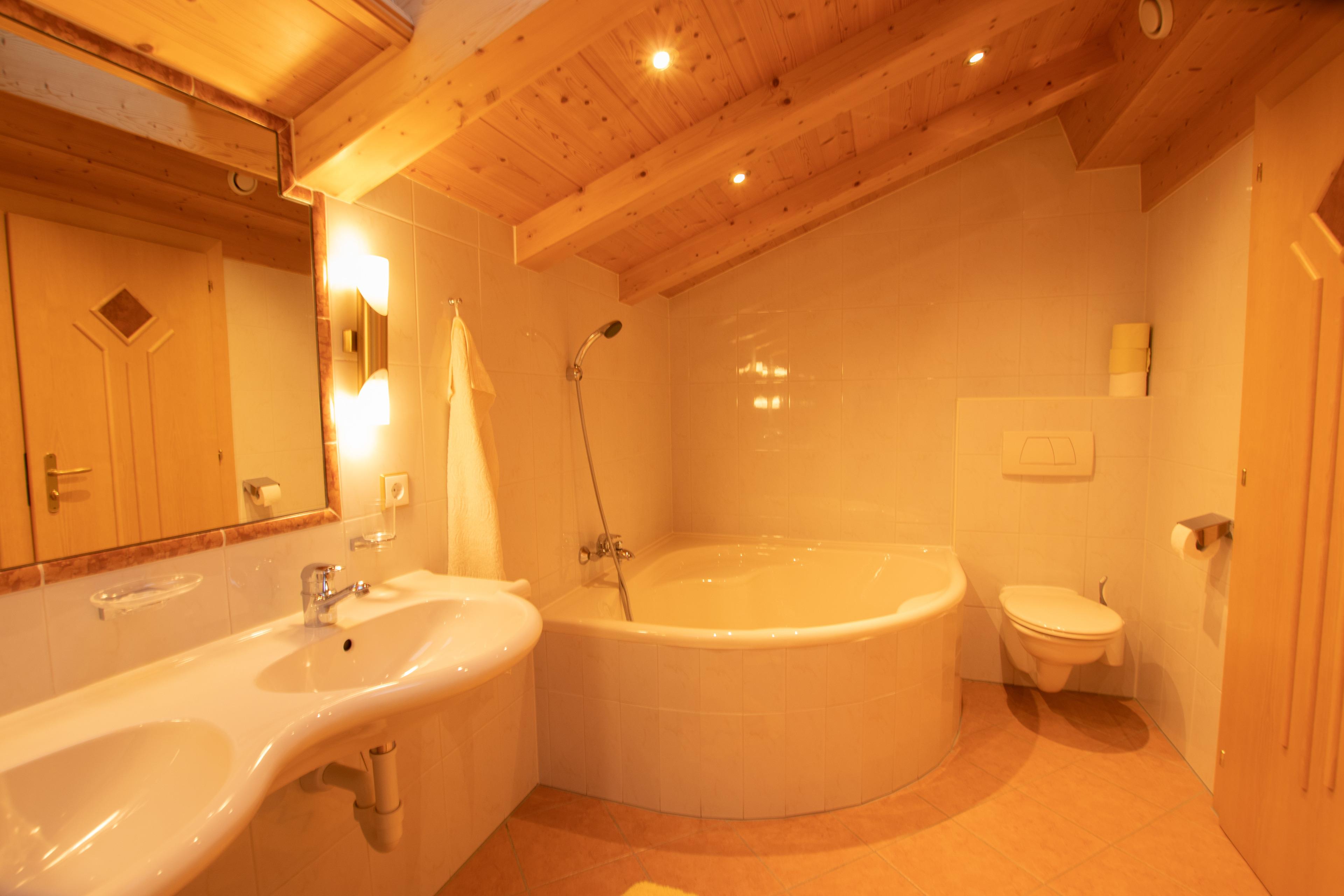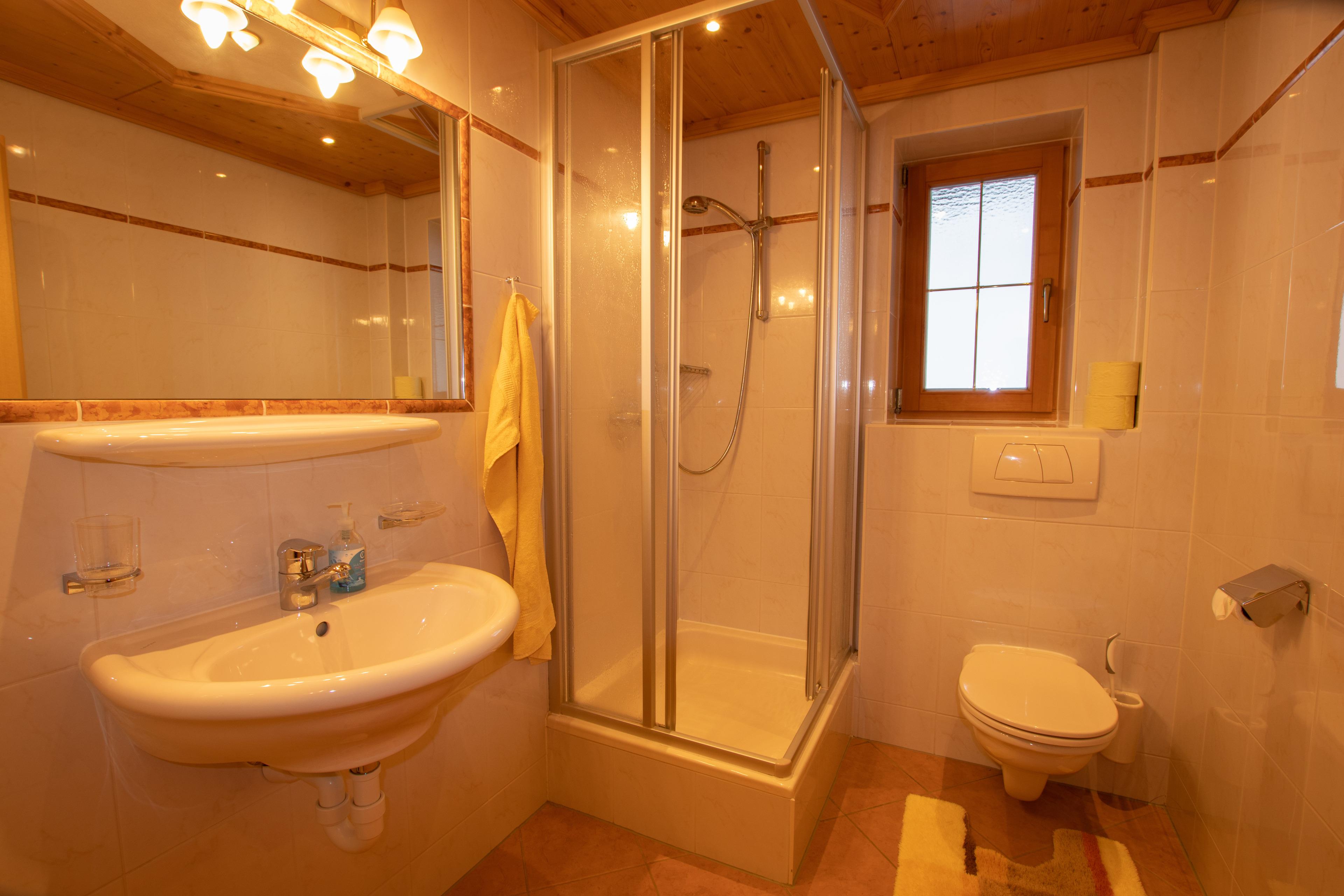 Oberen Etagen: Doppelbettzimmer (Schrankraum und Bad, Dusche/WC und Doppelwaschbecken), Doppelbettzimmer mit großem Ausziehbett, geräumiges Einzelzimmer (zusätzlich. Ausziehbett) - alle Zimmer mit Balkon, Radio, Wecker, Fön. Extra Dusche und WC am Gang. Ein Garagenabstellplatz bzw. 2 Abstellplätze vor dem Haus.
