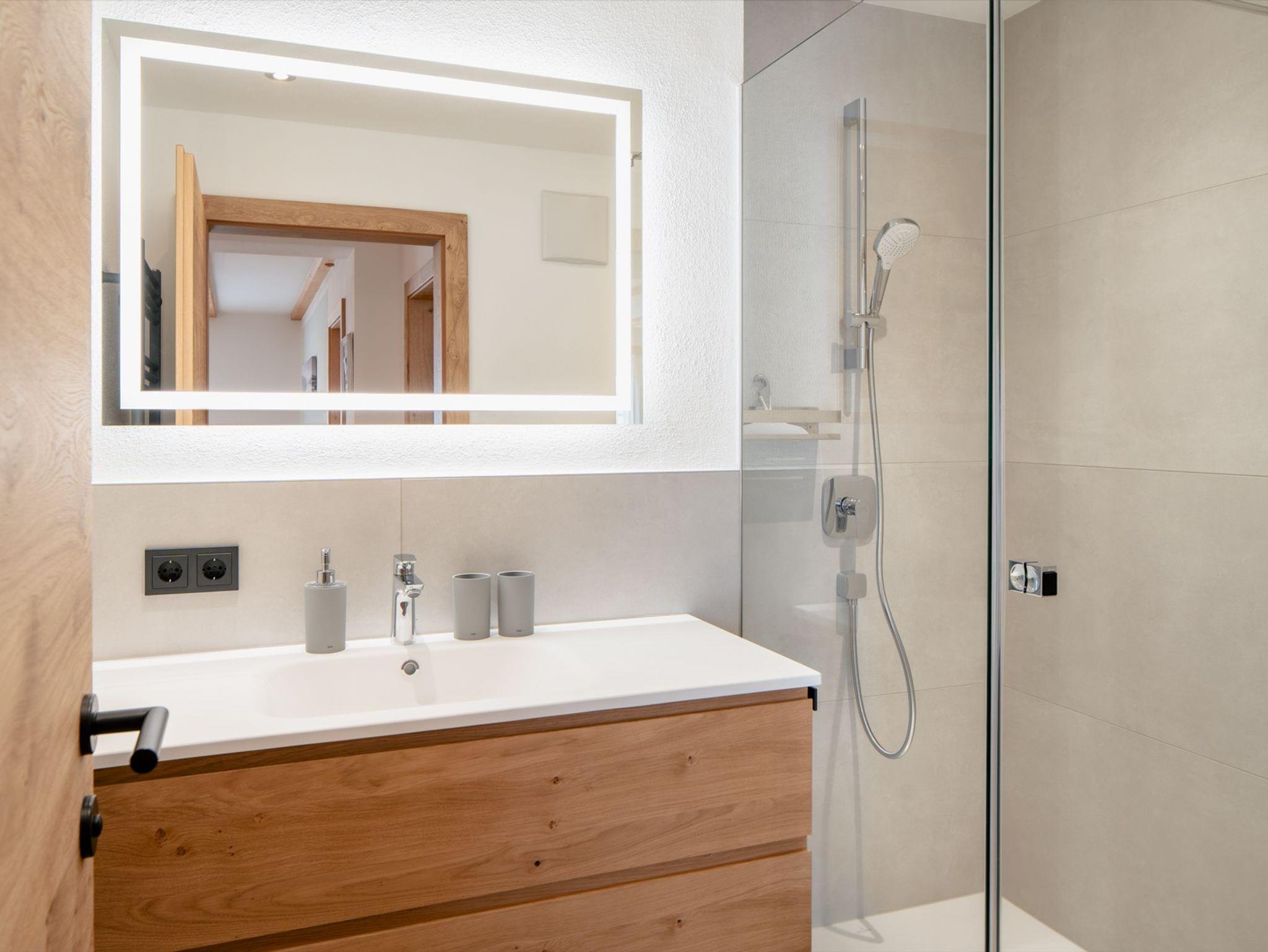 Das Badezimmer bietet ausreichend Platz für eure persönlichen Utensilien. Frische Handtücher und ein Haartrockner sind selbstverständlich vorhanden.